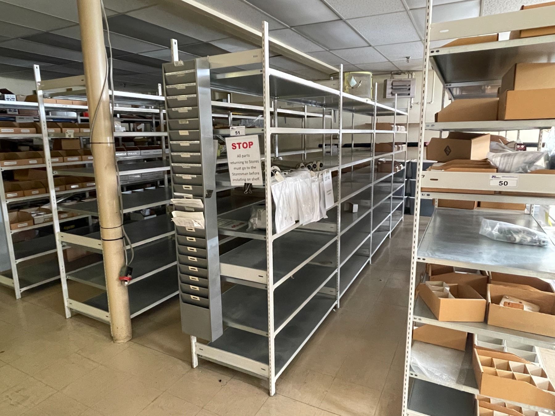 4 BAYS OF EZ-RECT STYLE PARTS SHELVING 84"H X 48"W X 24"D ( HELICOPTER PARTS NOT INCLUDED ) *SIZE IS PER BAY*