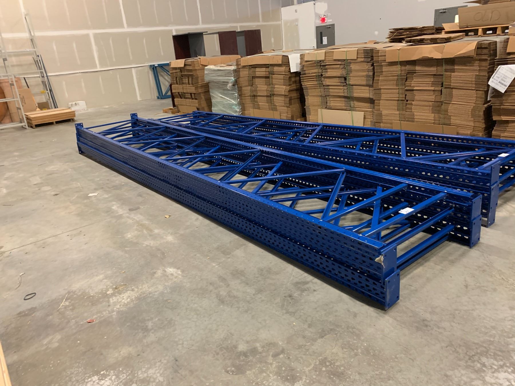 4 BAYS OF INDUSTRIAL PALLET RACKING INCLUDING 5 - 20' X 42" UPRIGHTS AND 24 - 8' X 4.5" CROSS BEAMS