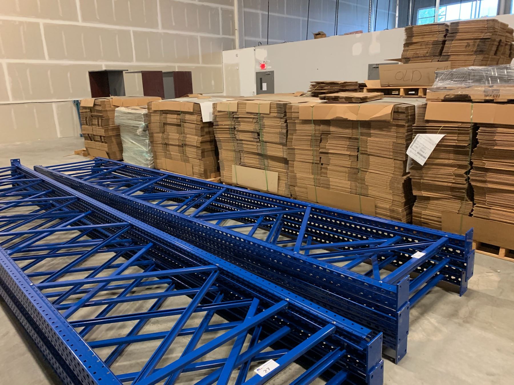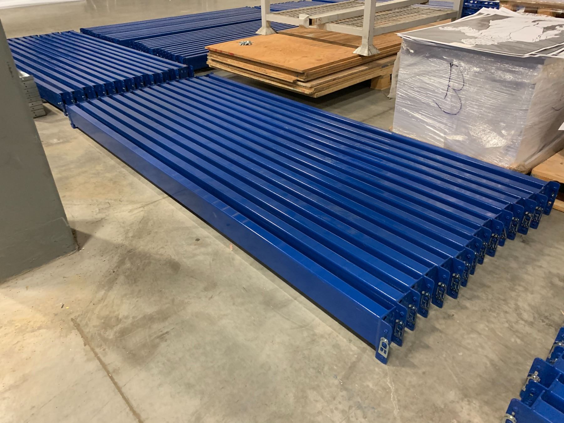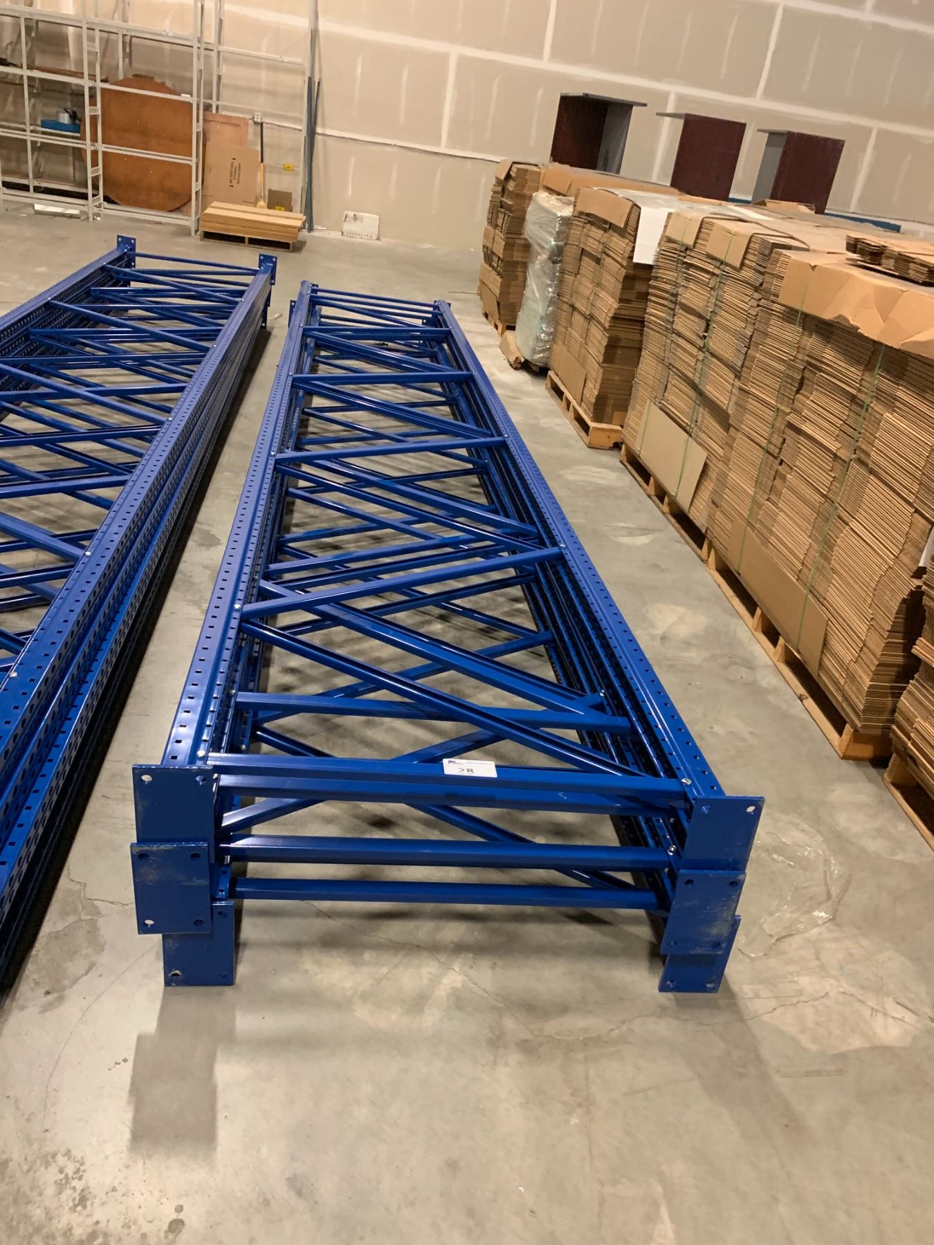 4 BAYS OF INDUSTRIAL PALLET RACKING INCLUDING 5 - 20' X 42" UPRIGHTS AND 24 - 8' X 4.5" CROSS BEAMS