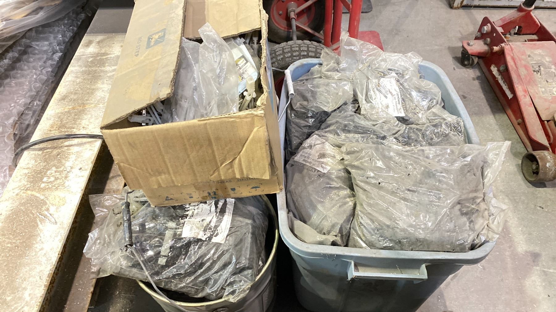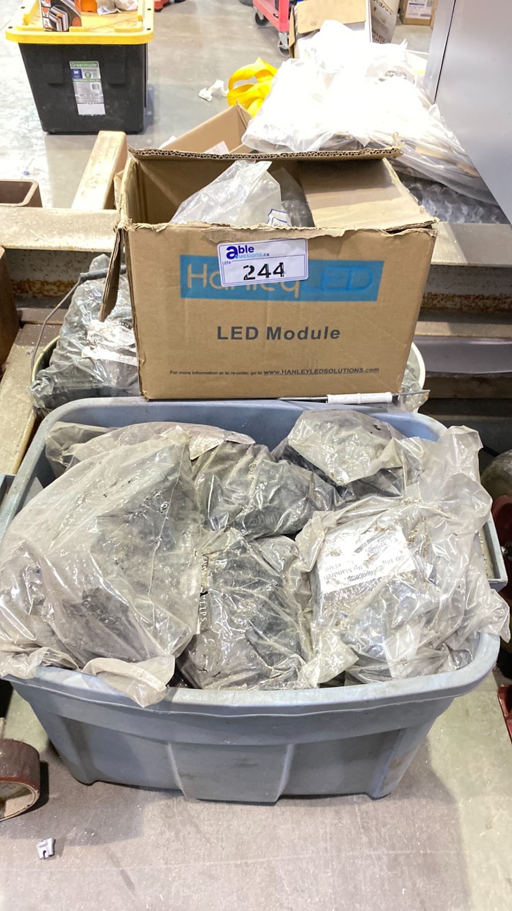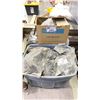 4 BINS AND ONE BOX OF ASSORTED PLASTIC ELECTRICAL MODULE PARTS