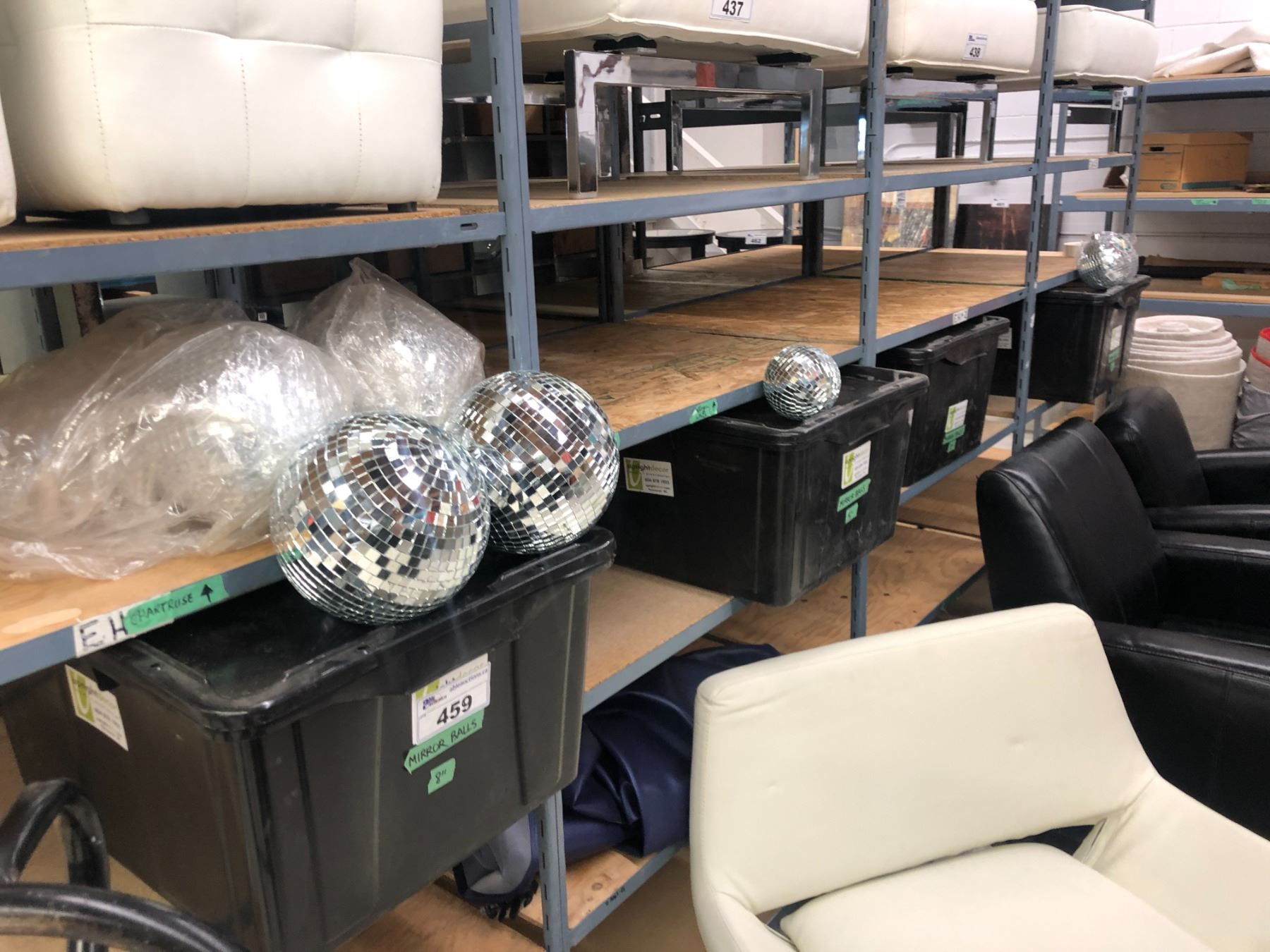 4 BINS OF ASSORTED SIZE MIRROR BALLS