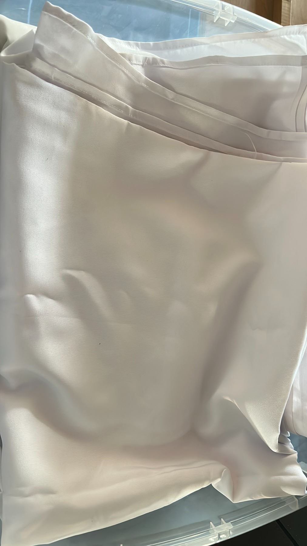 4 BINS OF WHITE RECTANGULAR TABLE CLOTHS