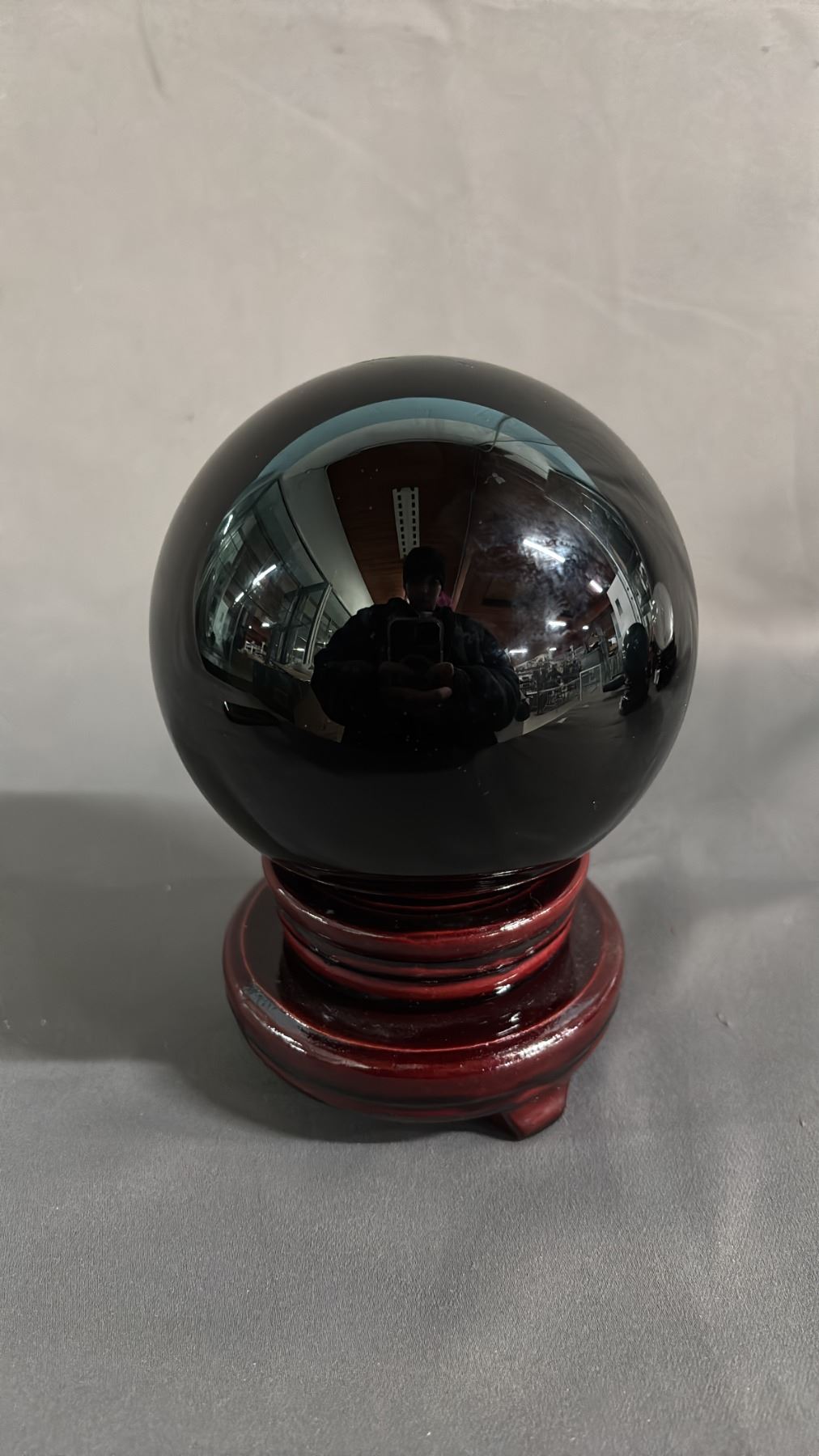 4" BLACK ONYX SPHERE ON ROTATING WOOD STAND