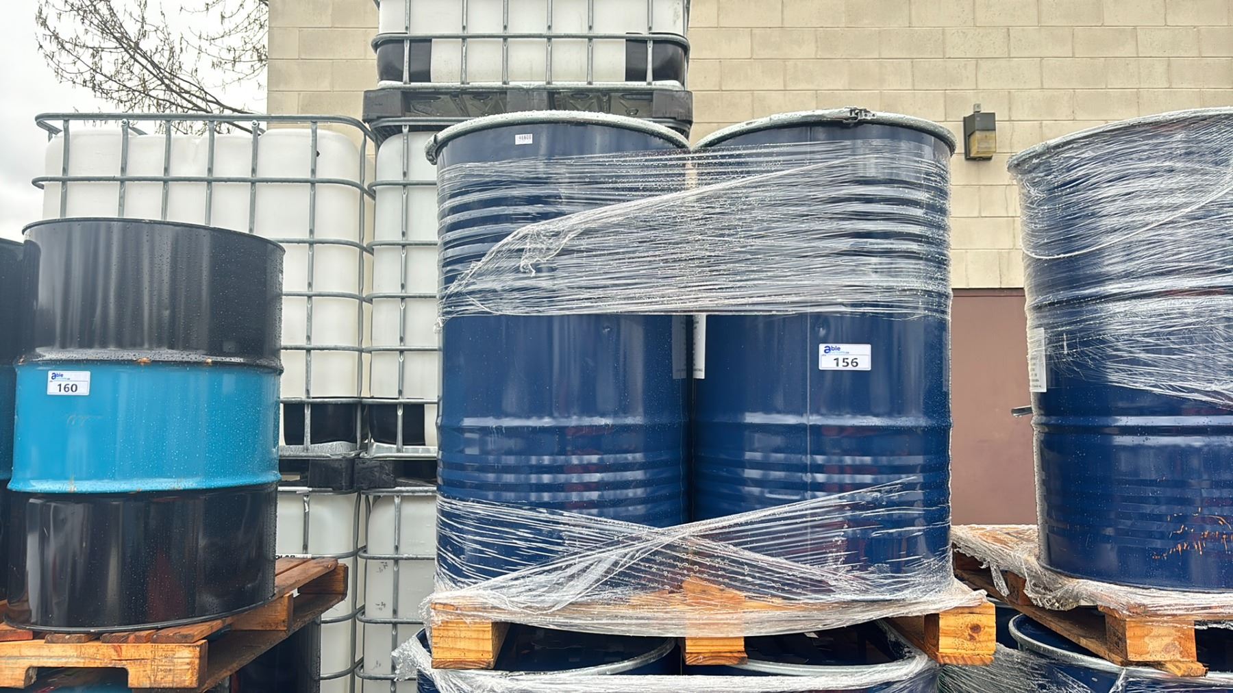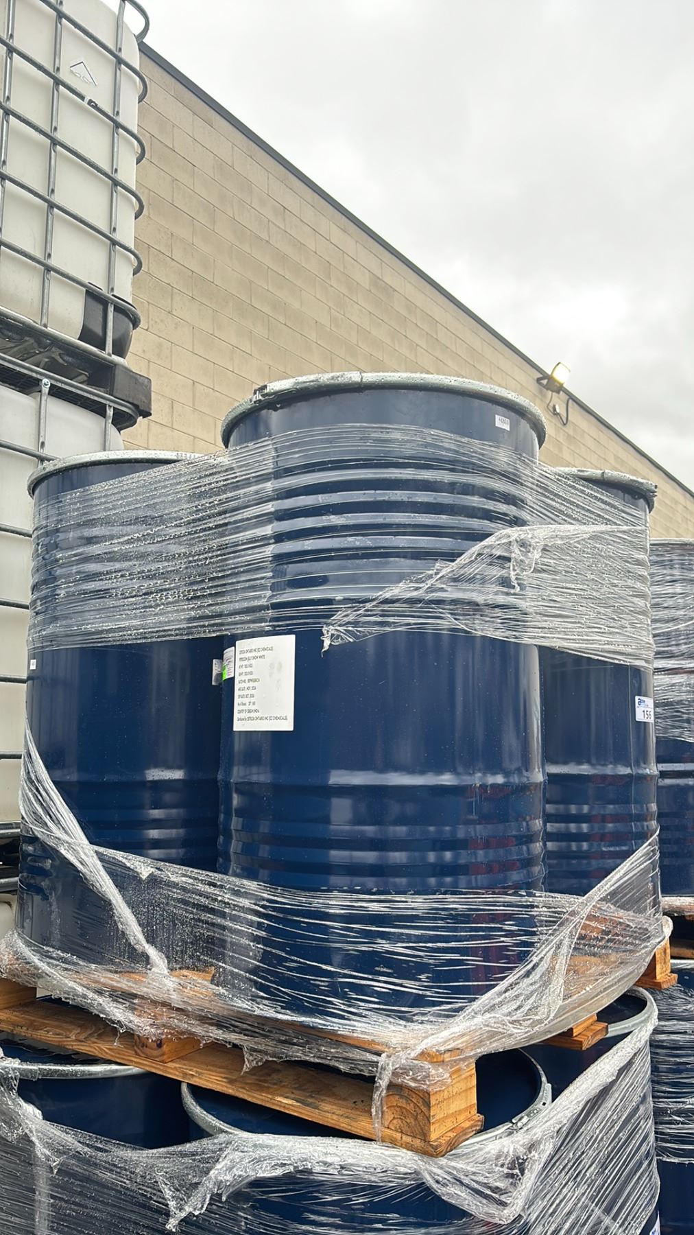 4 BLUE INDUSTRIAL METAL EMPTY BARRELS WITH LIDS
