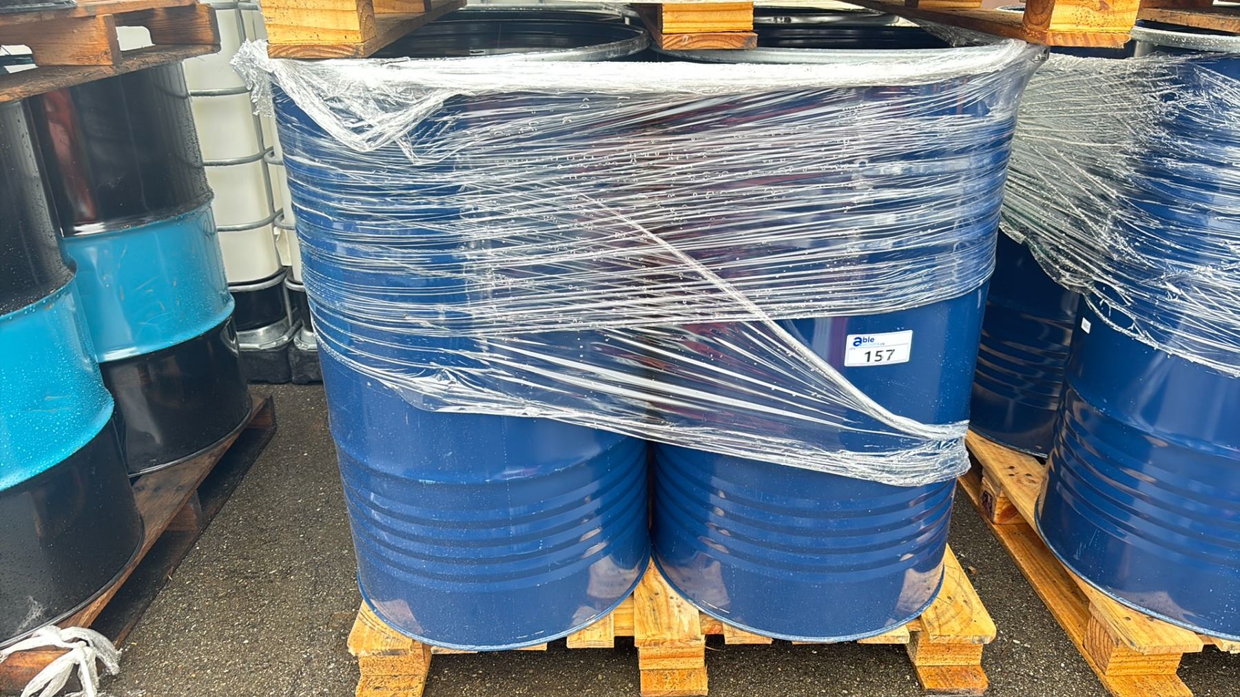 4 BLUE INDUSTRIAL METAL EMPTY BARRELS WITH LIDS