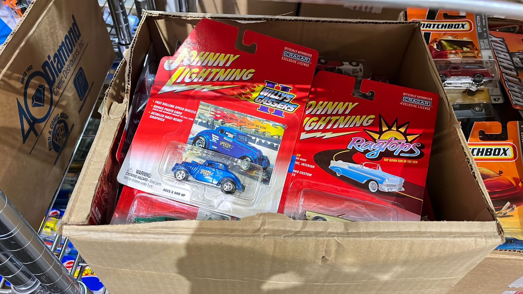 4 BOXES OF ASSORTED DIE CAST VEHICLES - MUSCLE MACHINES, JOHNNY LIGHTNING & MATCHBOX