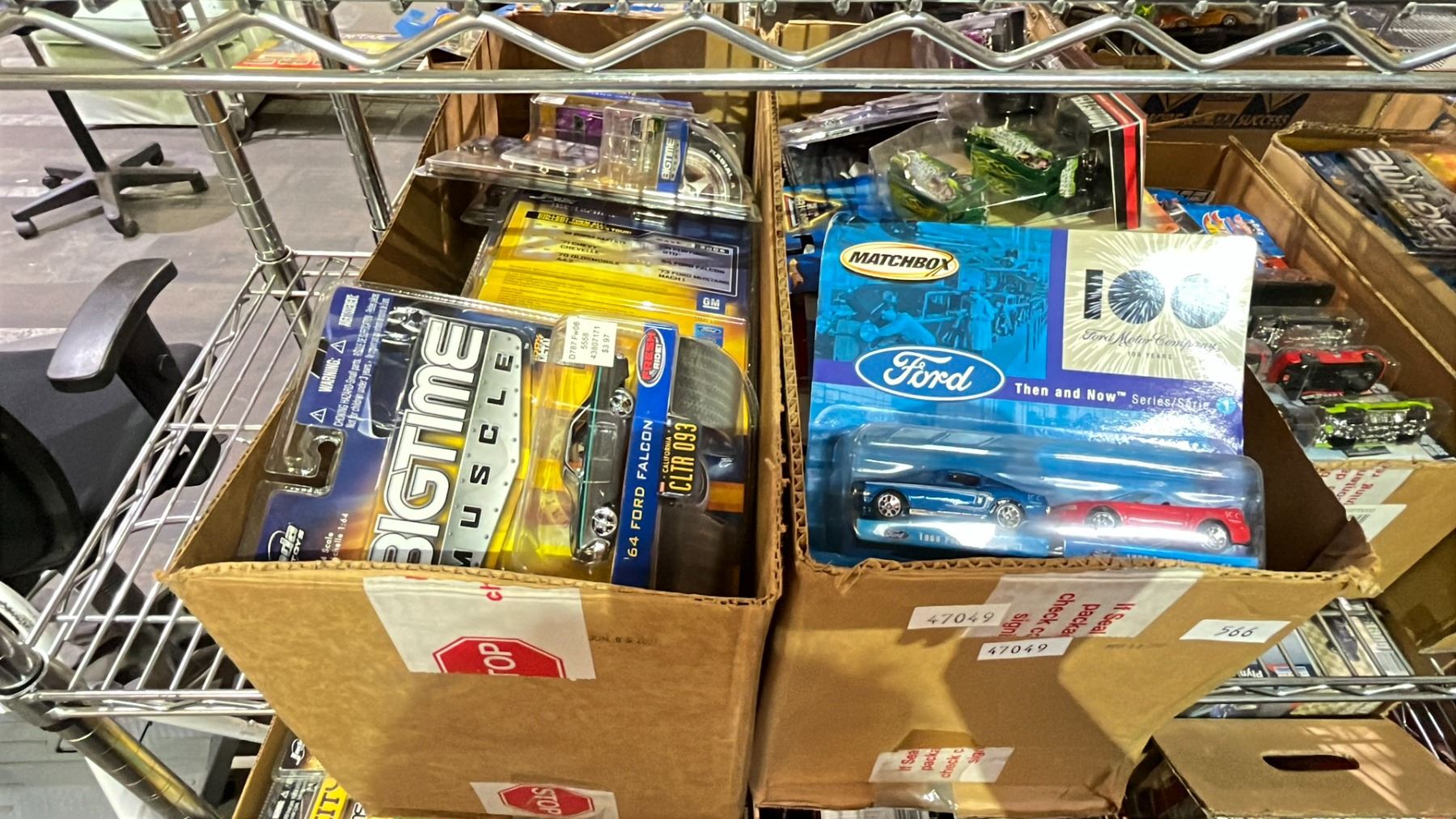 4 BOXES OF ASSORTED DIE CASTS - MATCHBOX, BIG TIME MUSCLE & HOT WHEELS