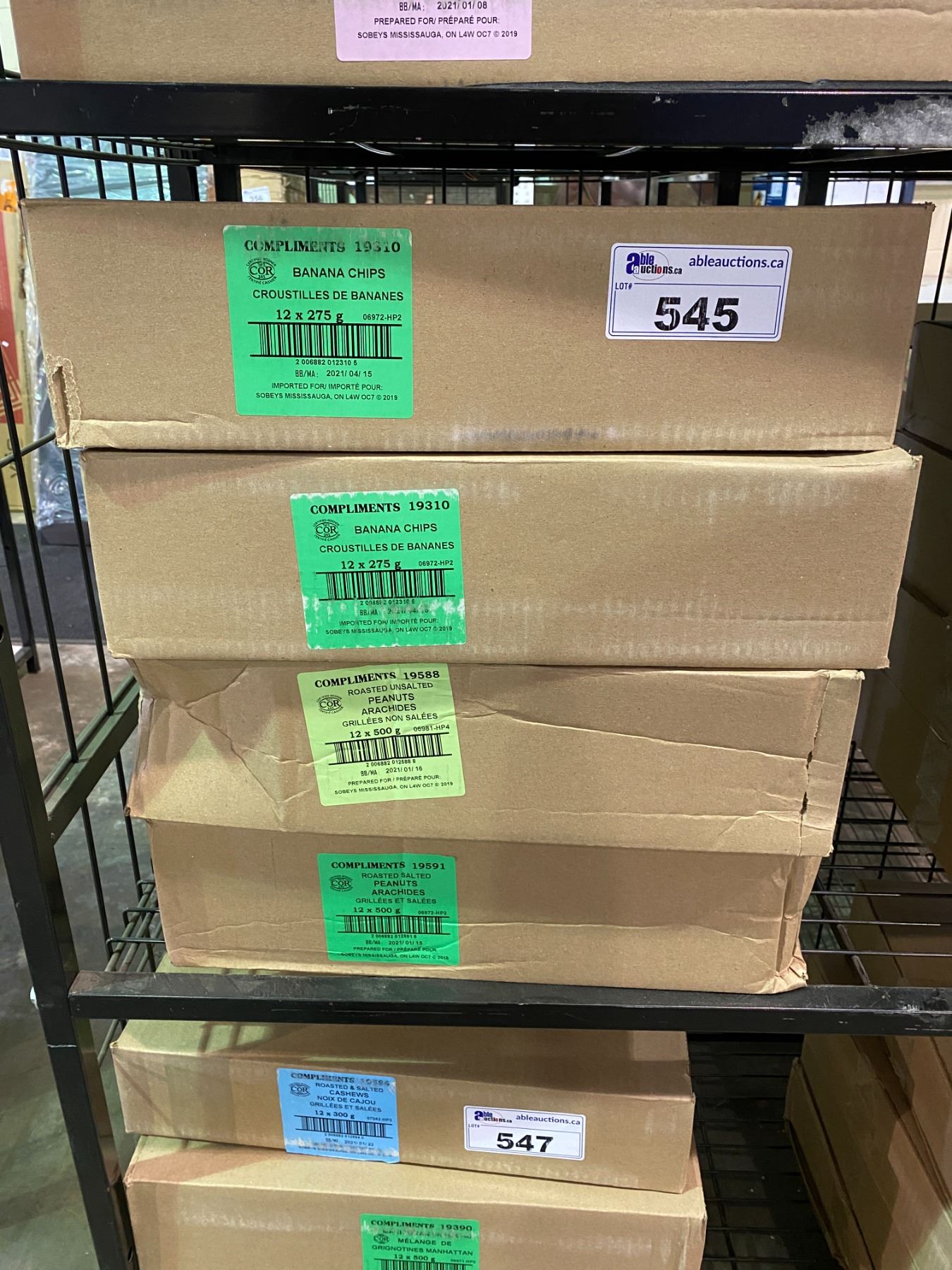 4 BOXES OF ASSORTED DRIED GOODS (BANANA CHIPS & PEANUTS)