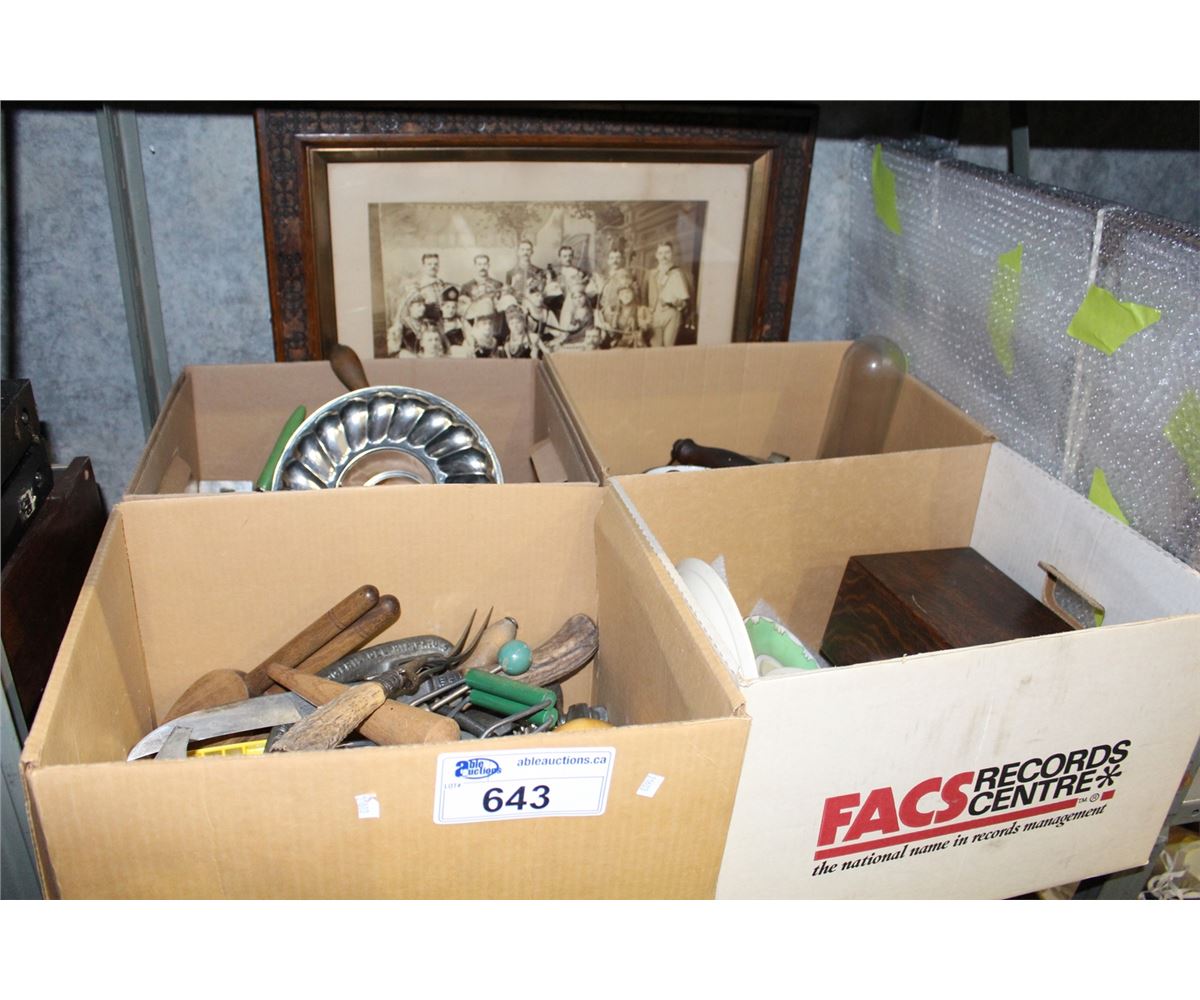 4 BOXES OF VINTAGE HOUSEHOLD KITCHEN WARES