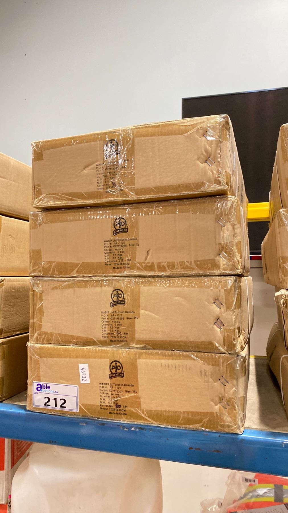 4 BOXES OF WASIP PIO AP-1522 HIGH VISIBILITY YELLOW JOB SITE SAFETY VESTS 1 BOX 3XL, 1 BOX 2XL, 1 BOX XL, 1 BOX L