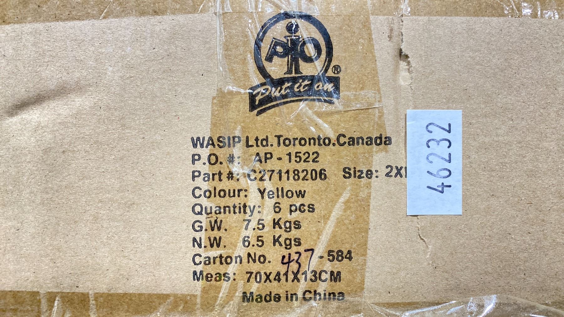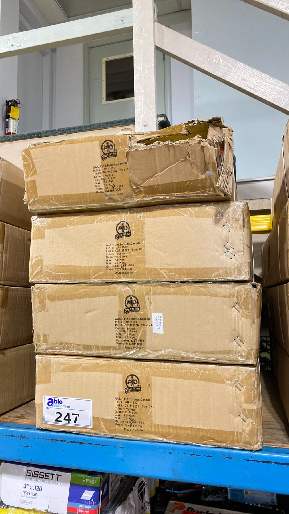 4 BOXES OF WASIP PIO AP-1522 HIGH VISIBILITY YELLOW JOB SITE SAFETY VESTS 1 BOX 3XL, 1 BOX 2XL, 1 BOX XL, 1 BOX L