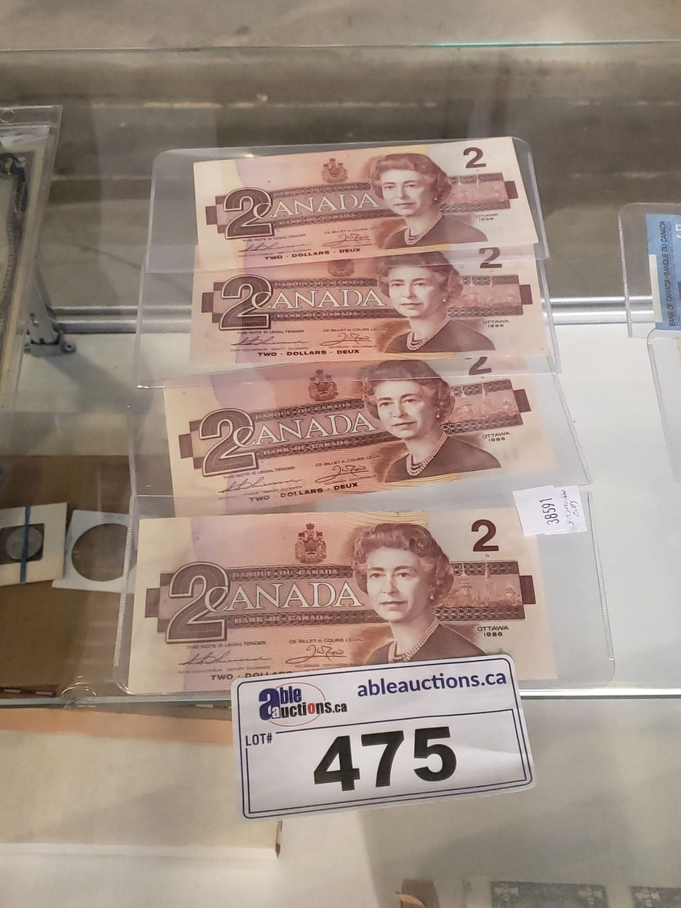 4 CANADIAN $2 BILLS CONSECUTIVE SERIAL #'S