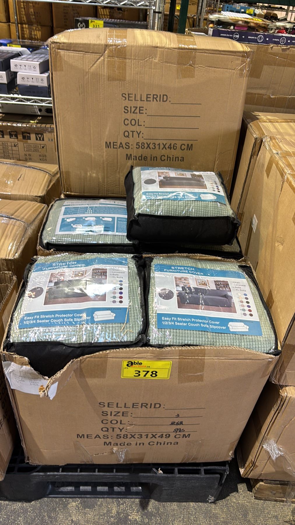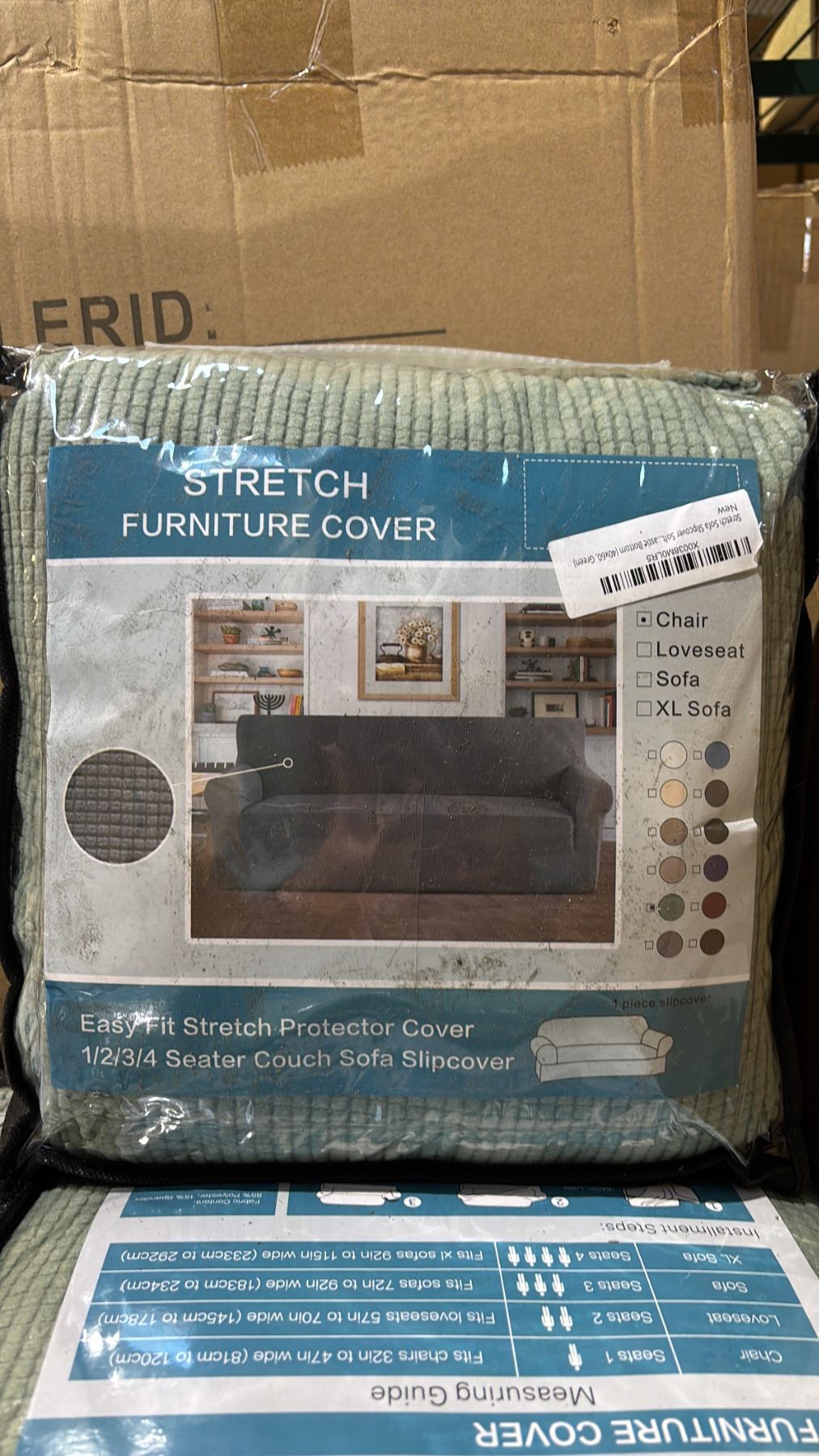 (4) CASES OF GREEN STRETCH SOFA COVERS