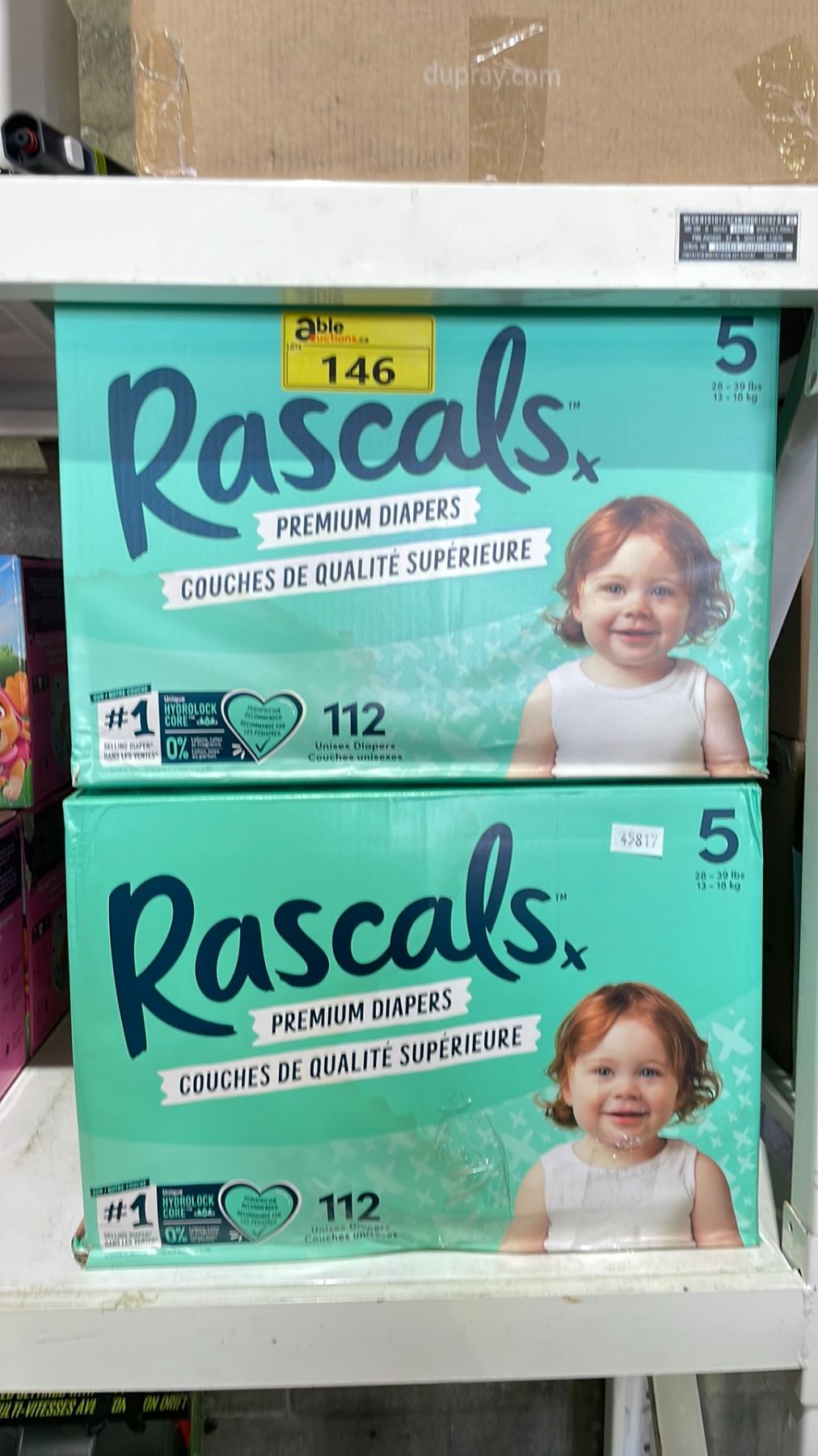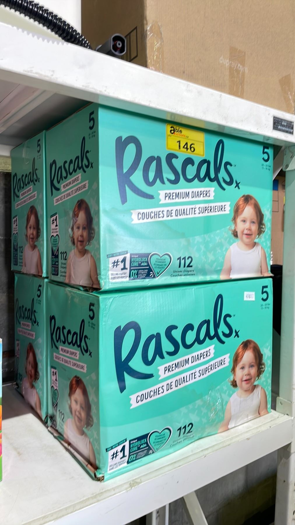 4 CASES OF RASCALS PREMIUM DIAPERS (112 DIAPERS PER CASE)