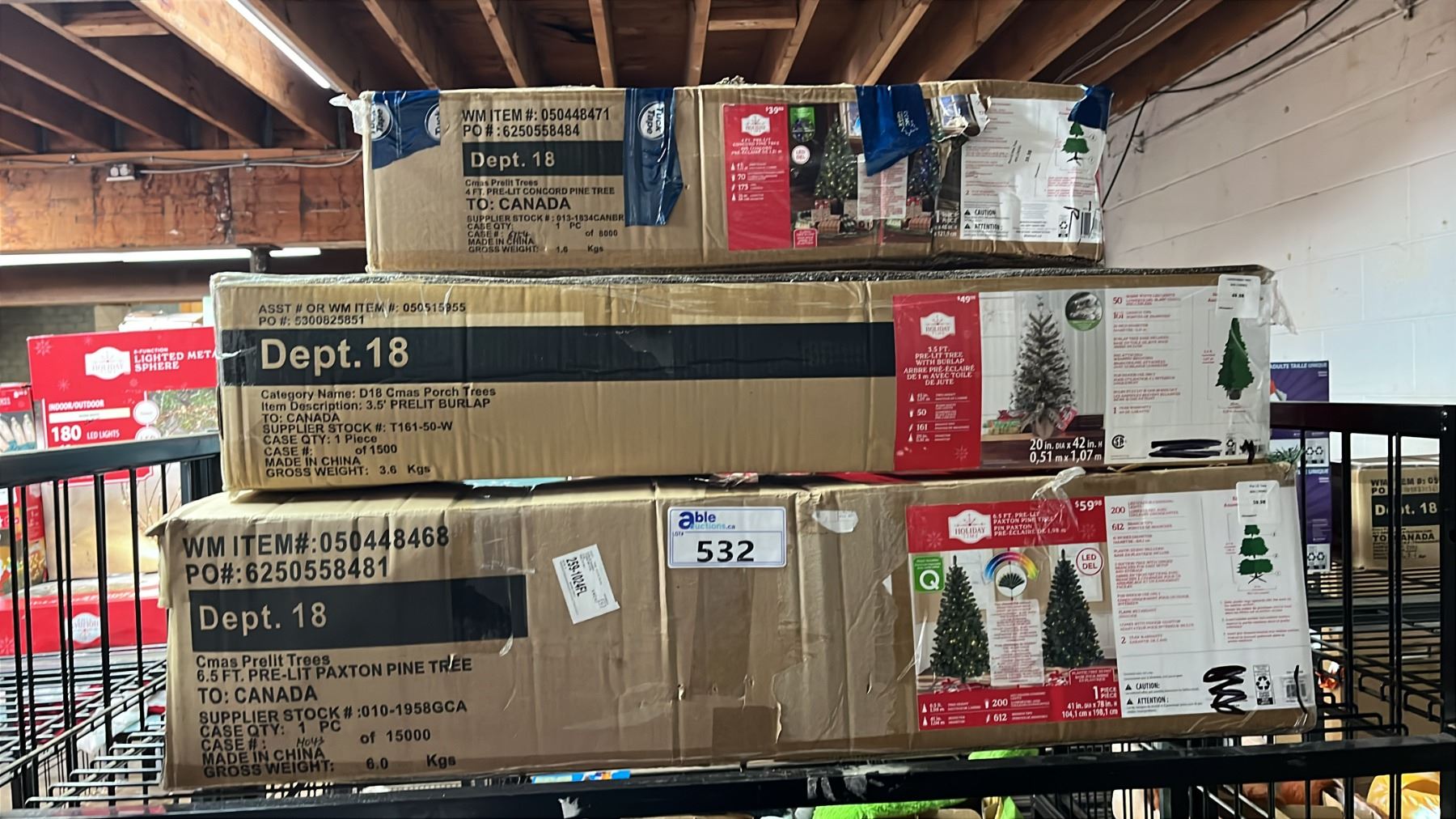 4' CONCORD PINE TREE, 3.5' BURLAP TREE & 6.5' PAXTON PINE TREE - ALL PRE-LIT