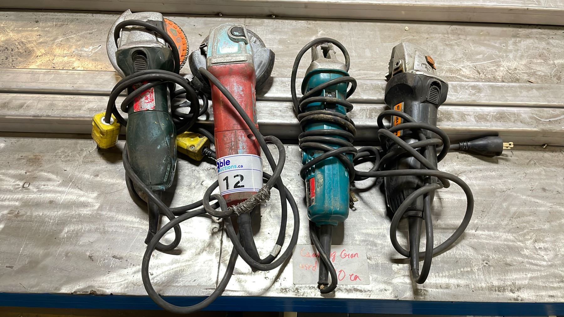 4 CORDED GRINDERS; METABO, MILWAUKEE, MAKITA AND WALTER