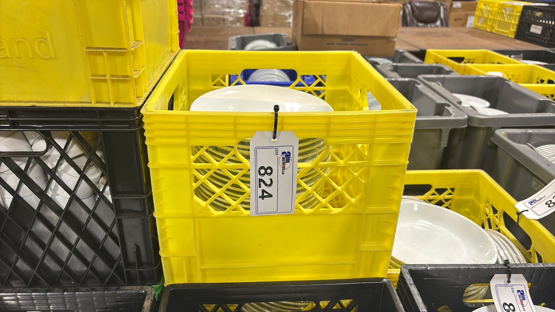 4 CRATES OF WHITE 9" COMMERCIAL RESTAURANT SIDE PLATES *CRATES INCLUDED* ( APPROX. 20 PLATES PER CRATE, 80 PLATES TOTAL )