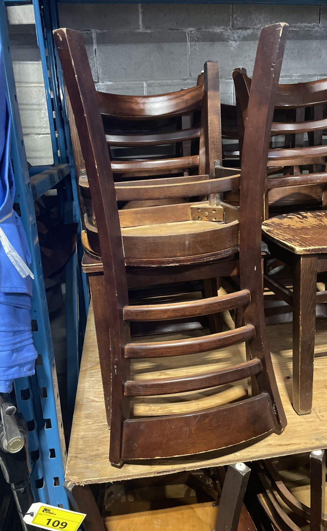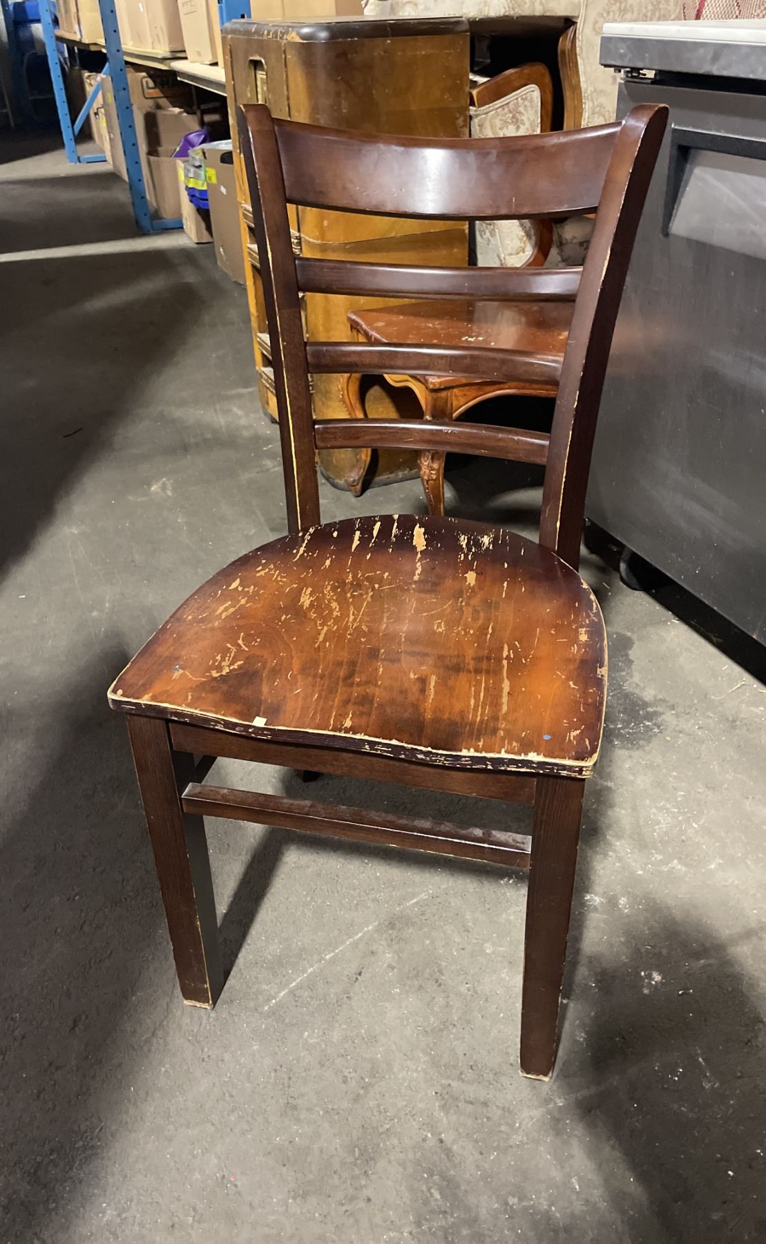 4 DARK WOOD COMMERCIAL SLAT BACK RESTAURANT CHAIRS