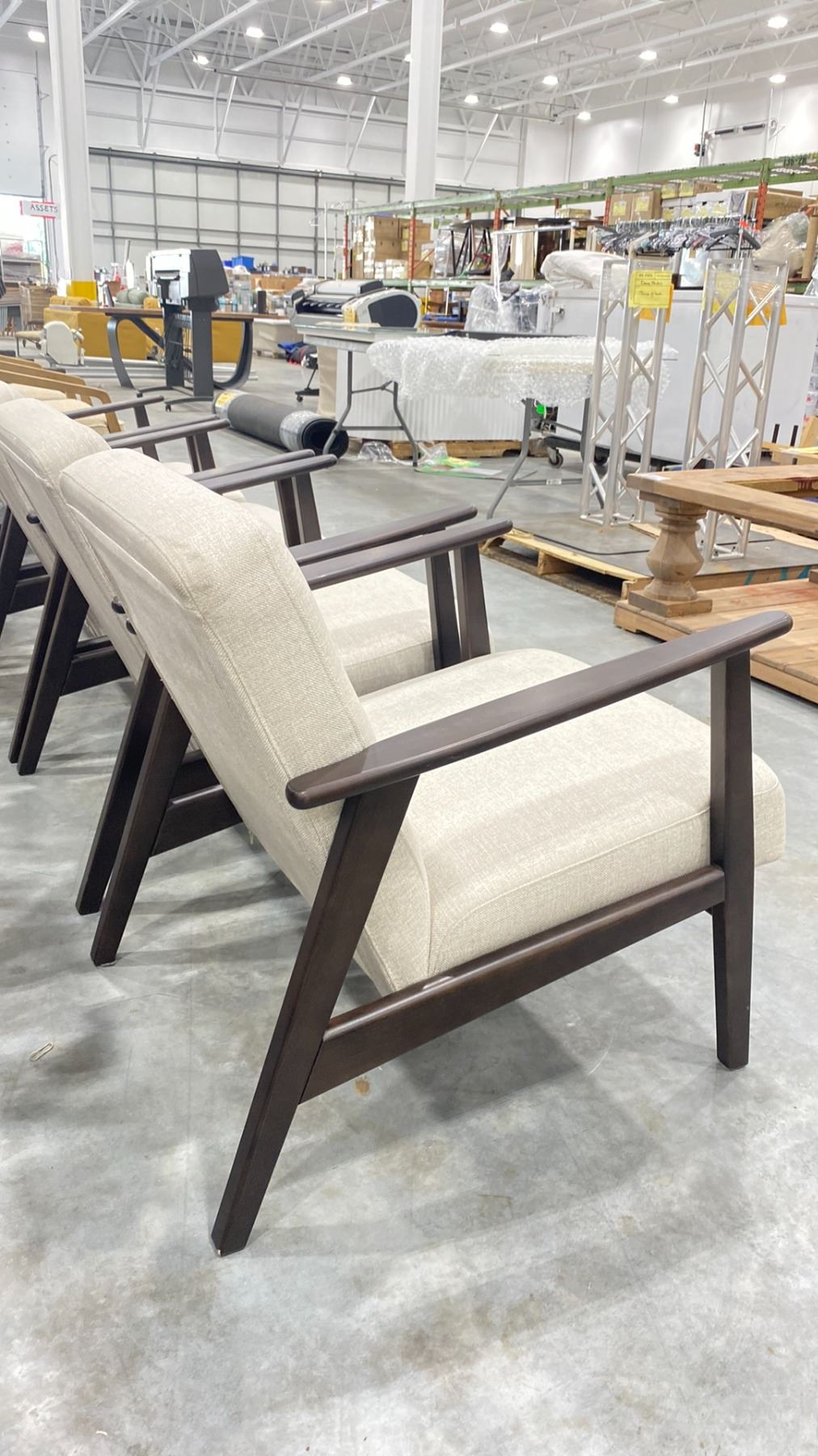 ( 4 ) DARK WOODEN CHAIRS WITH OFF WHITE CUSHIONS