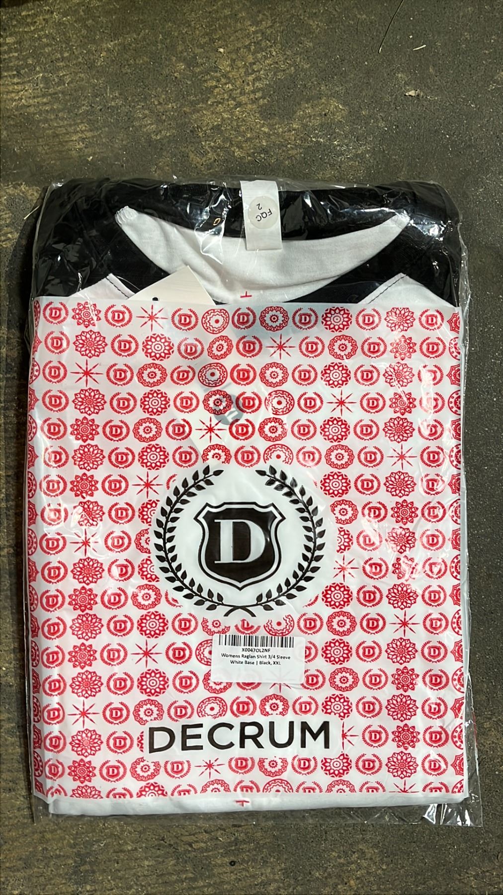 4 DECRUM WOMENS 3/4 SLEEVE WHITE BASE/BLACK EXTRA EXTRA LARGE SHIRTS