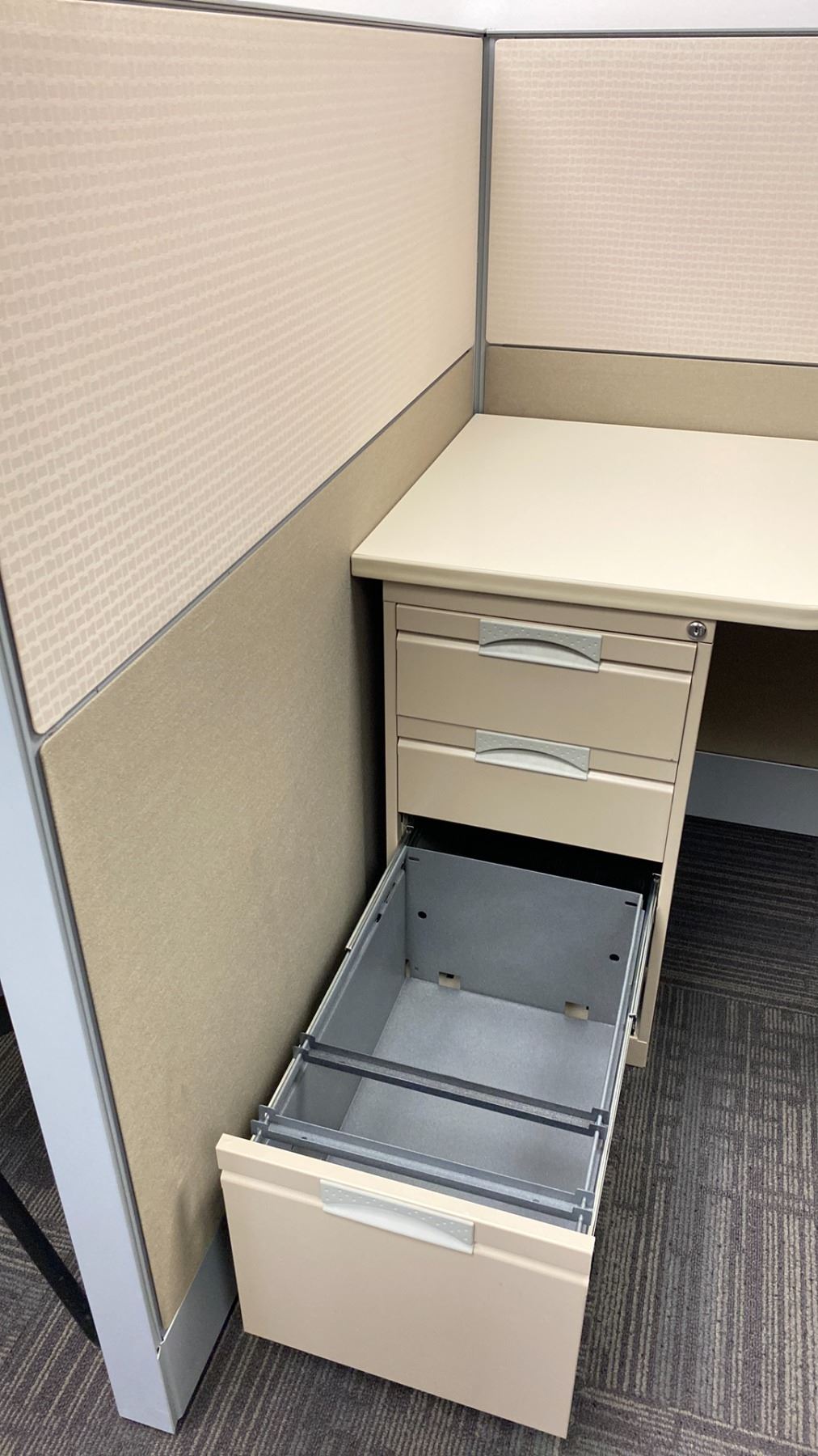 4 DESKS WITH CUBICLE WALLS OFFICE WORK SPACE SYSTEM *APPROX. DIMENSIONS 22FT ACROSS X 13FT WIDE X 5FT HIGH*