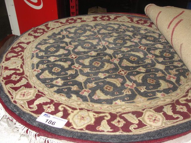 4' DIAMETER ROUND WOOL PILE AREA RUG - FLORAL PATTERN