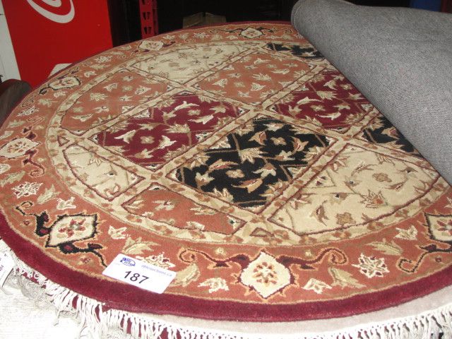 4' DIAMETER ROUND WOOL PILE AREA RUG - FLORAL PATTERN