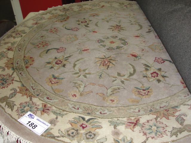 4' DIAMETER ROUND WOOL PILE AREA RUG - FLORAL PATTERN