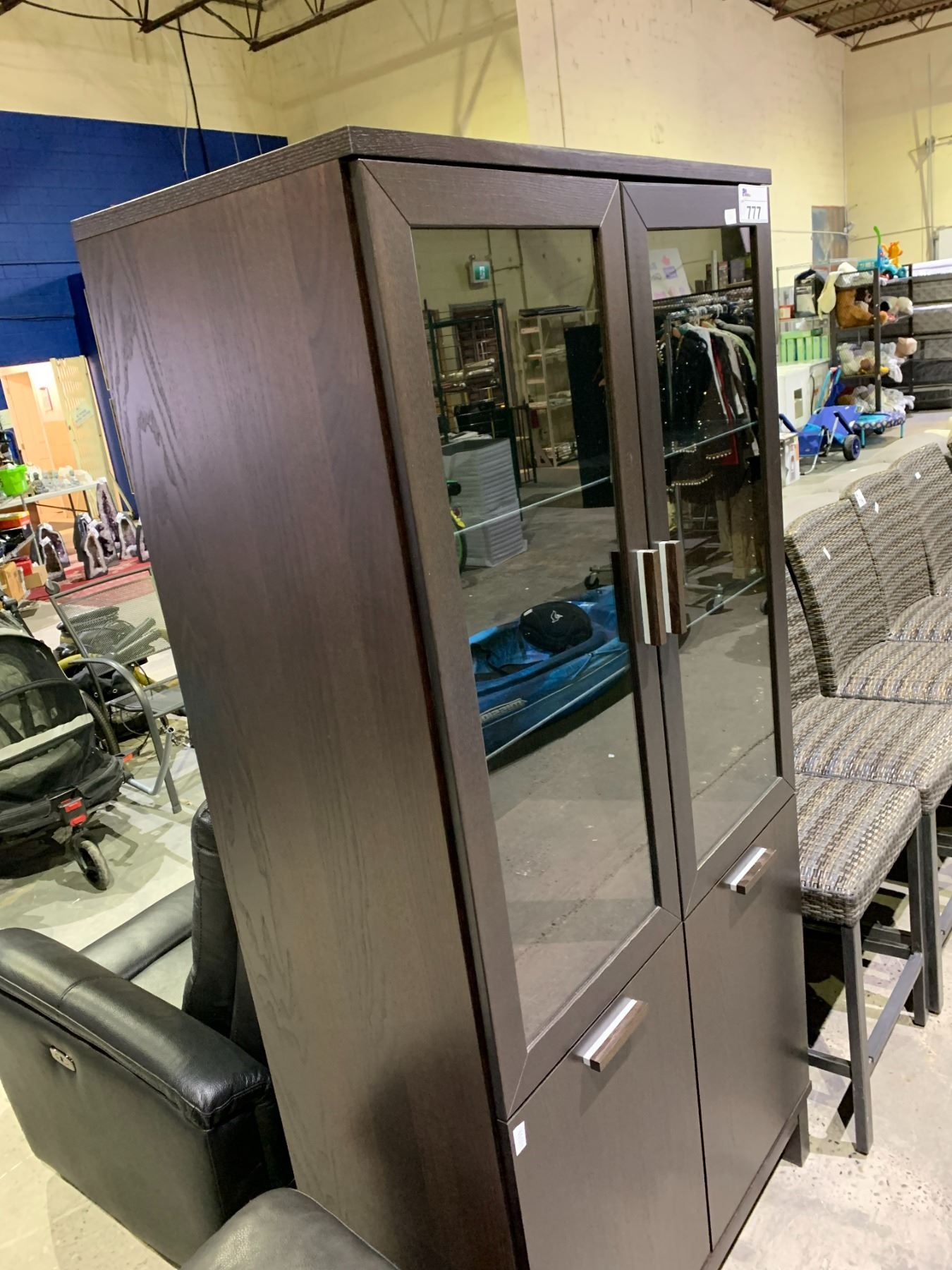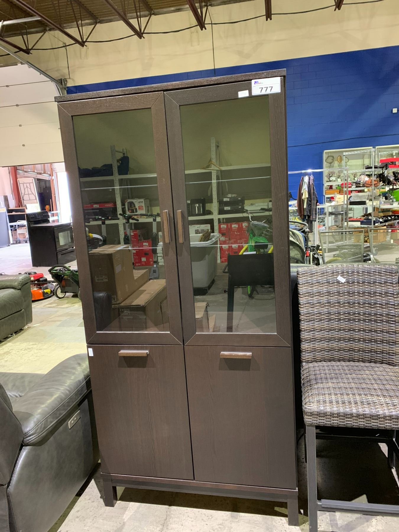 4 DOOR GLASS FRONT WOOD CABINET 18X36X74"