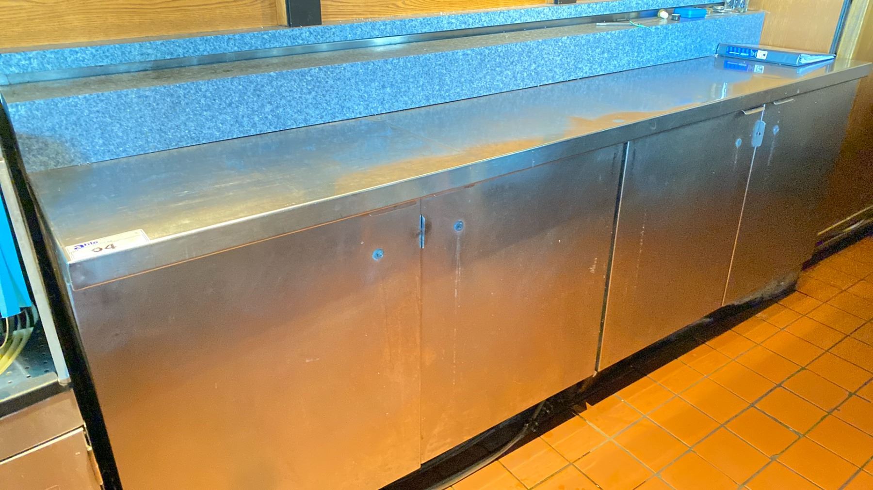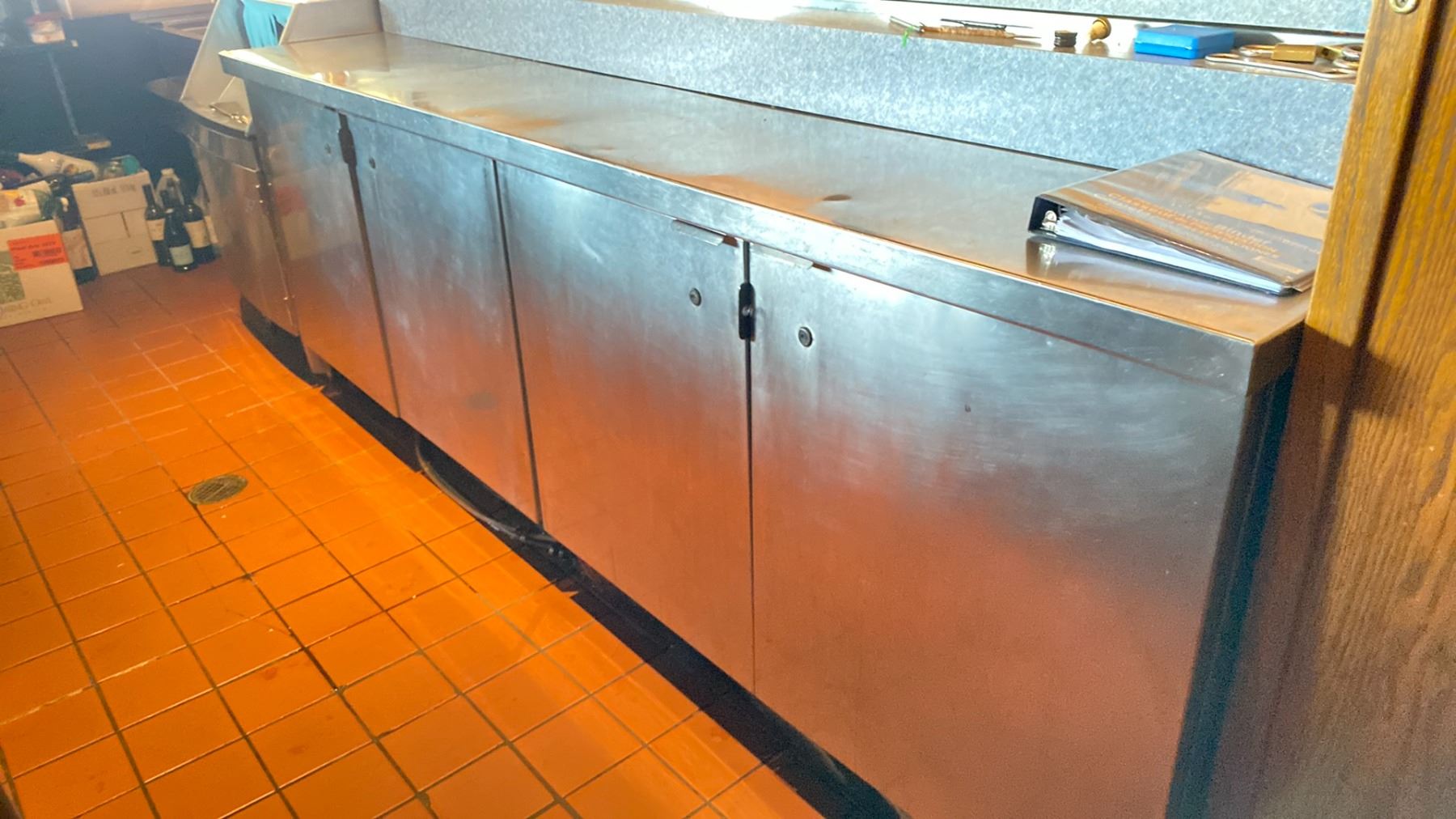 4 DOOR STAINLESS STEEL BAR COOLER APPROX 8 FT L X 2 FT W X 3 FT H