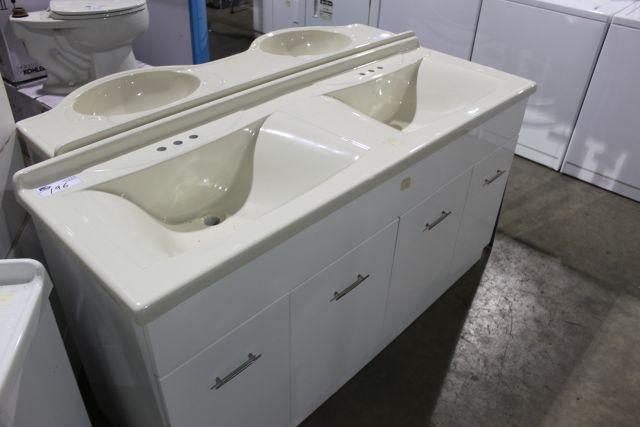 4 DOOR WHITE ON IVORY DOUBLE SINK BATHROOM VANITY