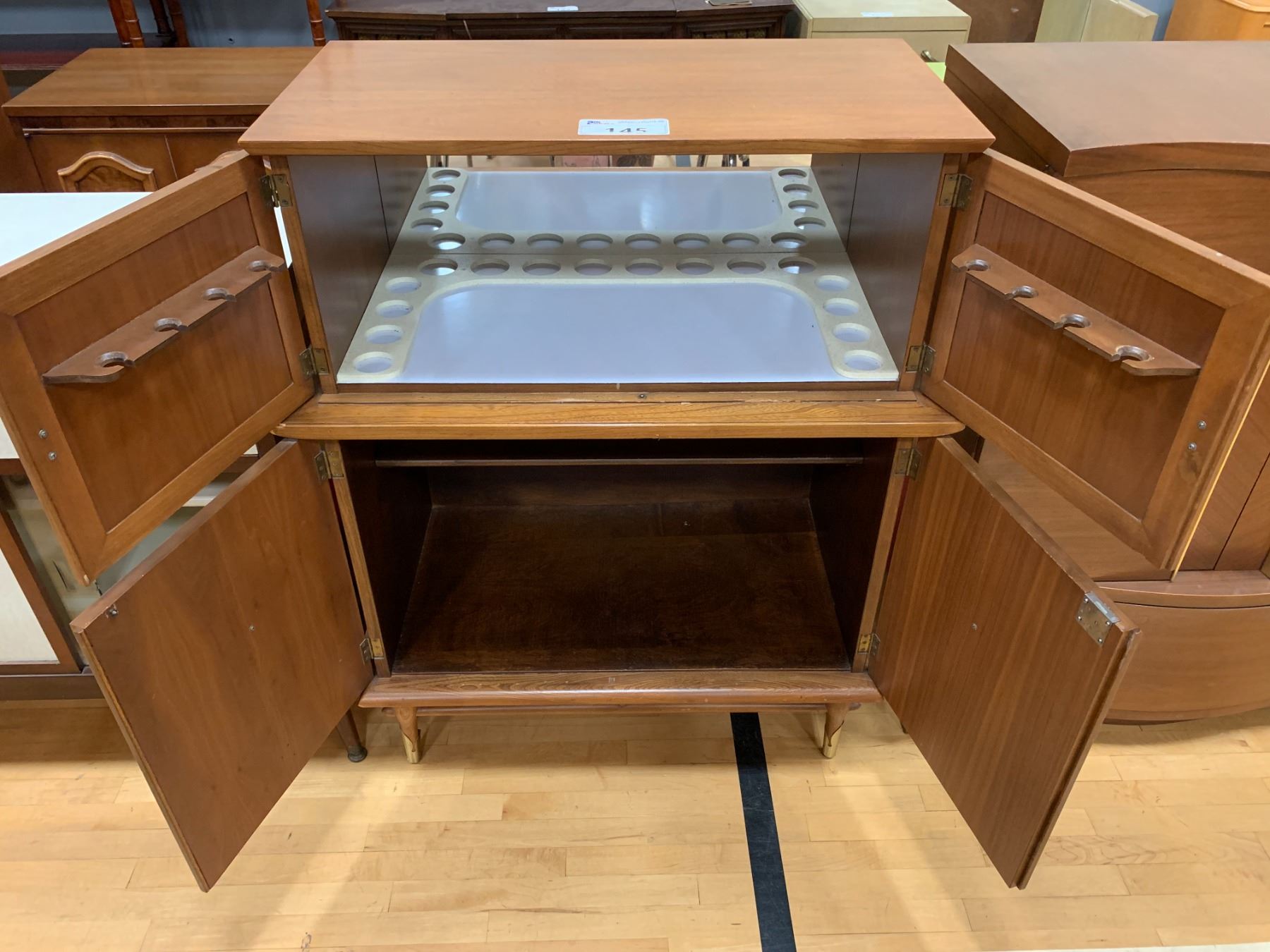 4 DOOR WOOD LOCKING SERVING STATION (NO KEY) APPROX 43"X35"X18"