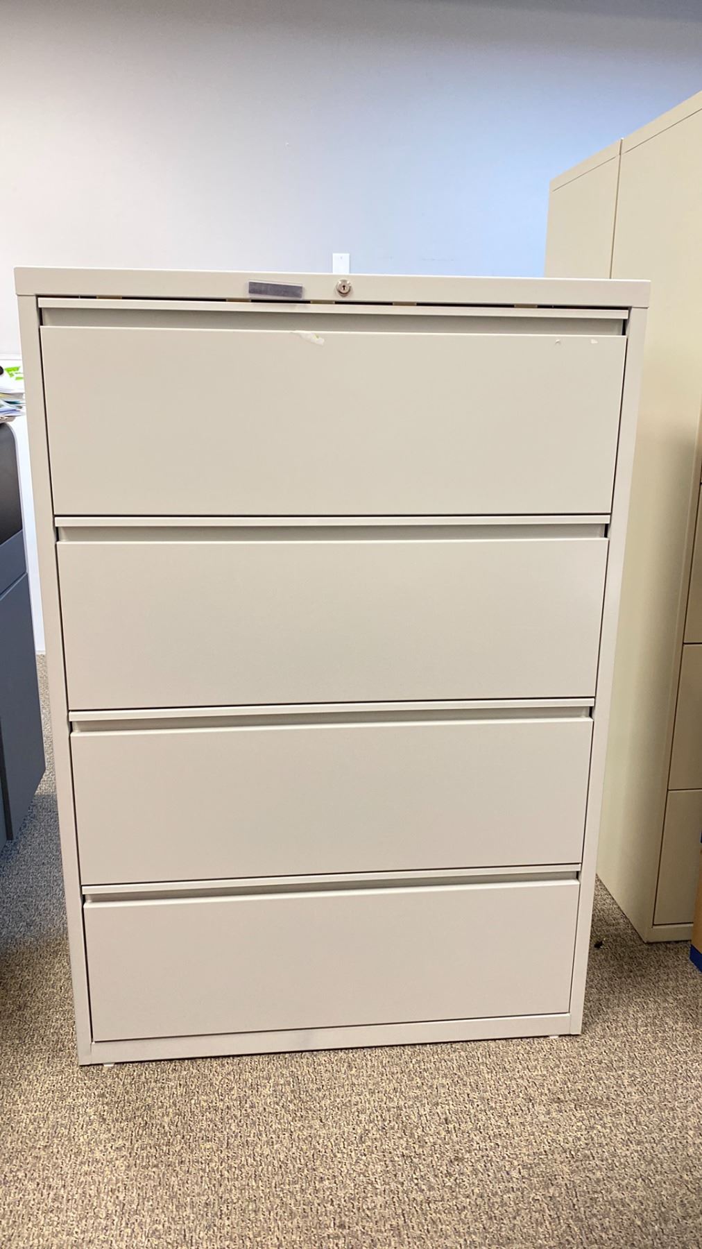 4 DRAWER LATERAL GREY METAL FILING CABINET