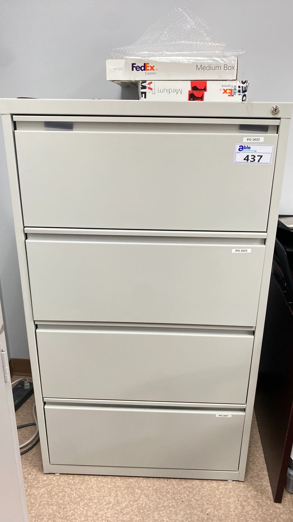4 DRAWER METAL FILE CABINET APPROX 2.5 X 4.5 AND 2 DRAWER DESK APPROX 4' X 2' (CONTENTS NOT INCLUDED)