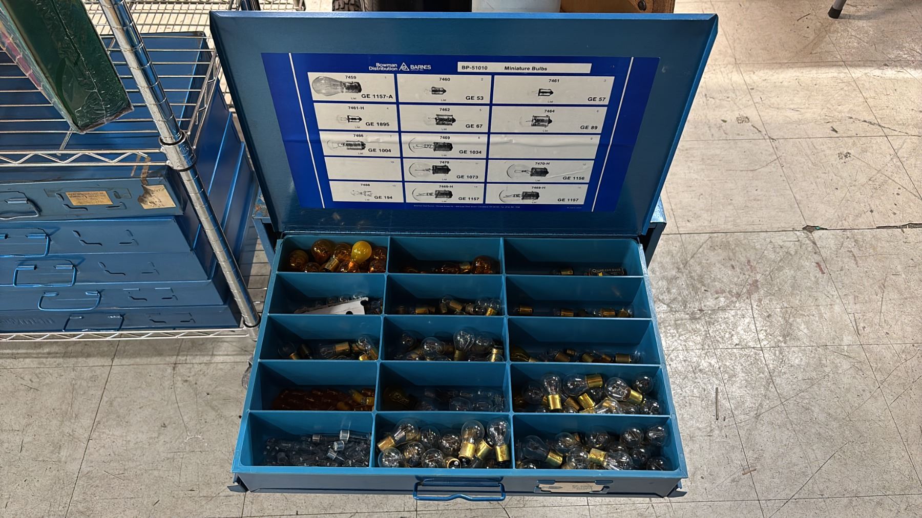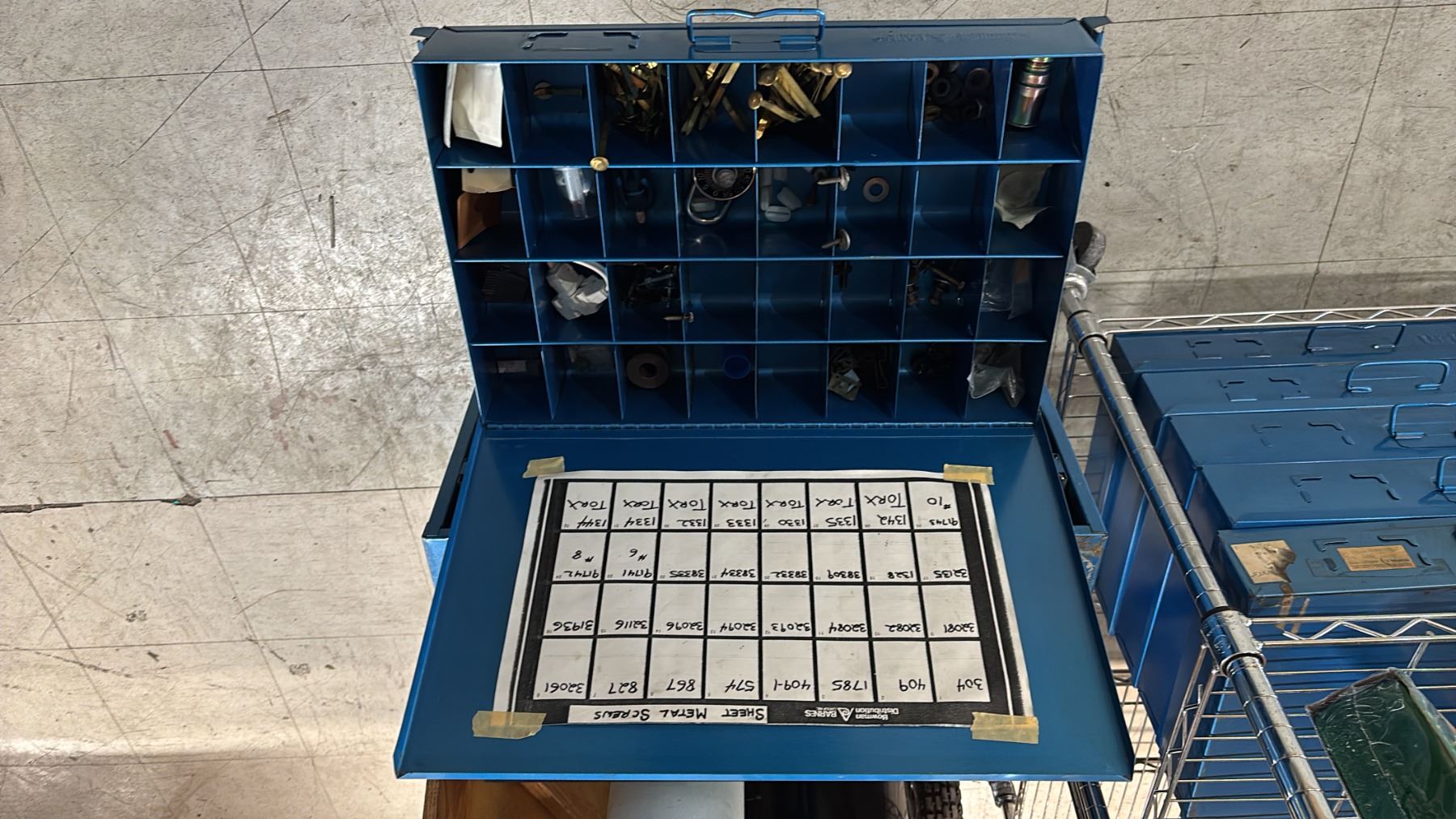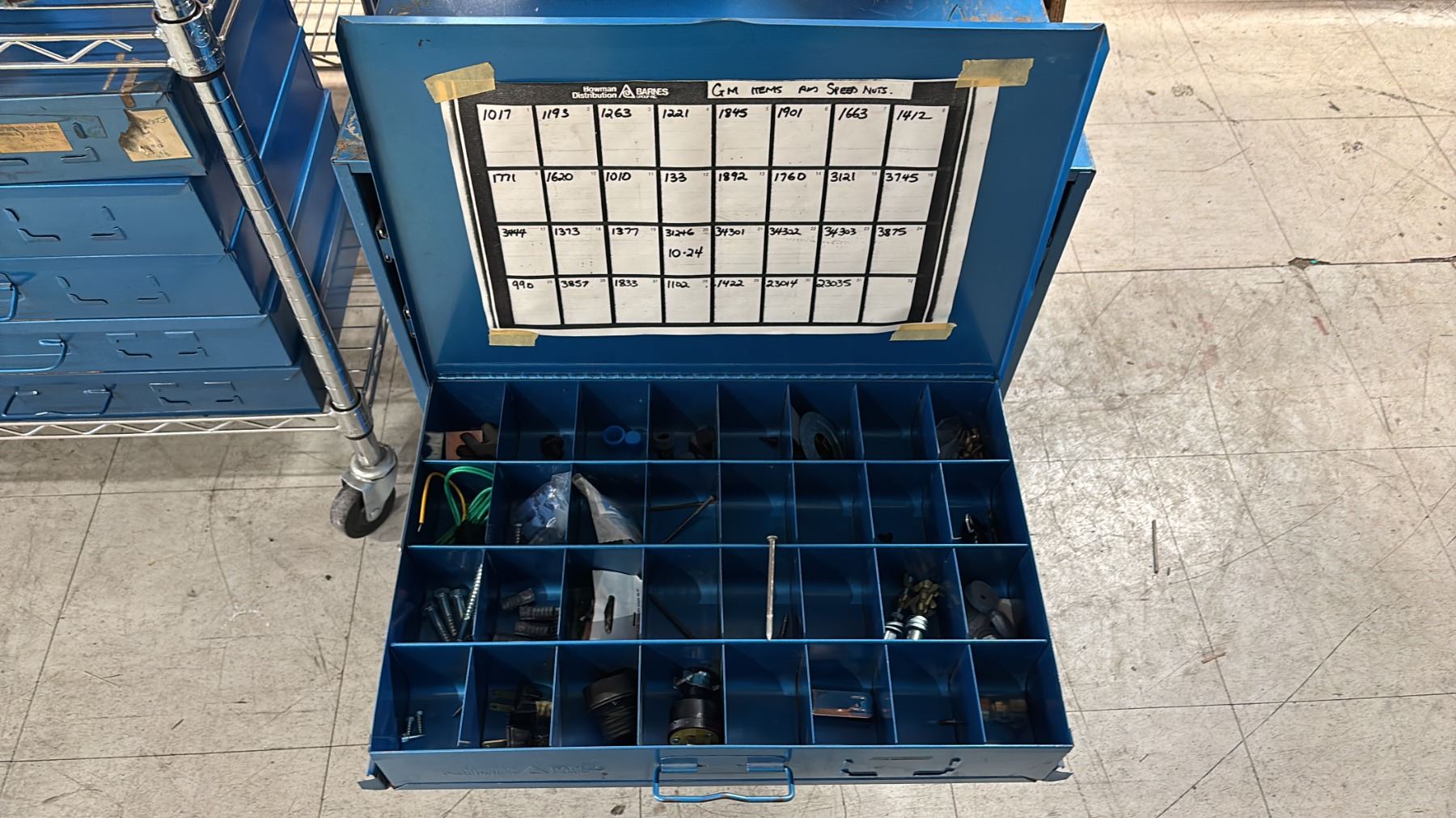 4 DRAWER METAL PARTS ORGANIZER WITH CONTENTS