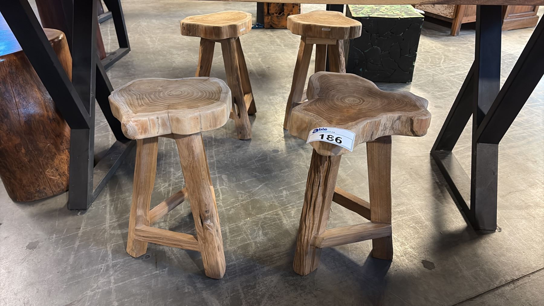 4 EXOTIC NATURAL LIVE EDGE STOOLS APPROX 12"W