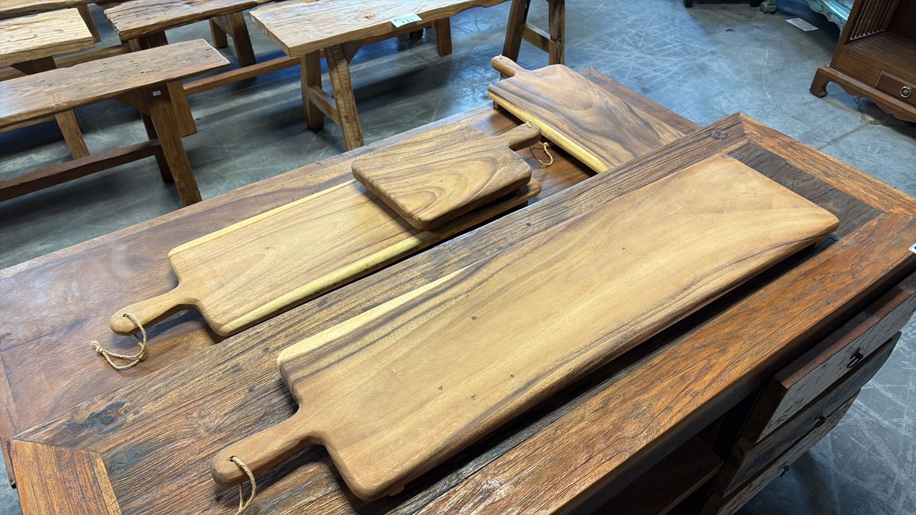 4 EXOTIC WOOD CHARCUTERIE PADDLE BOARDS 39,32,23 AND 16" LONG