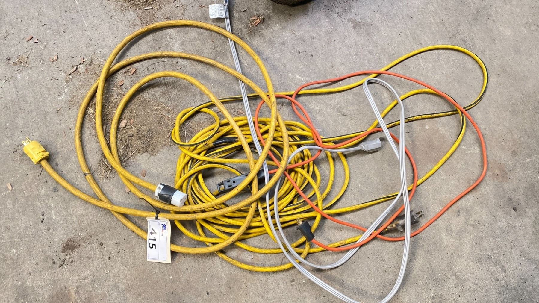 4 EXTENSION CORDS. ONE IS VERY HEAVY DUTY