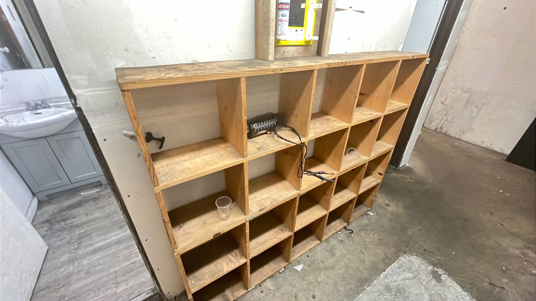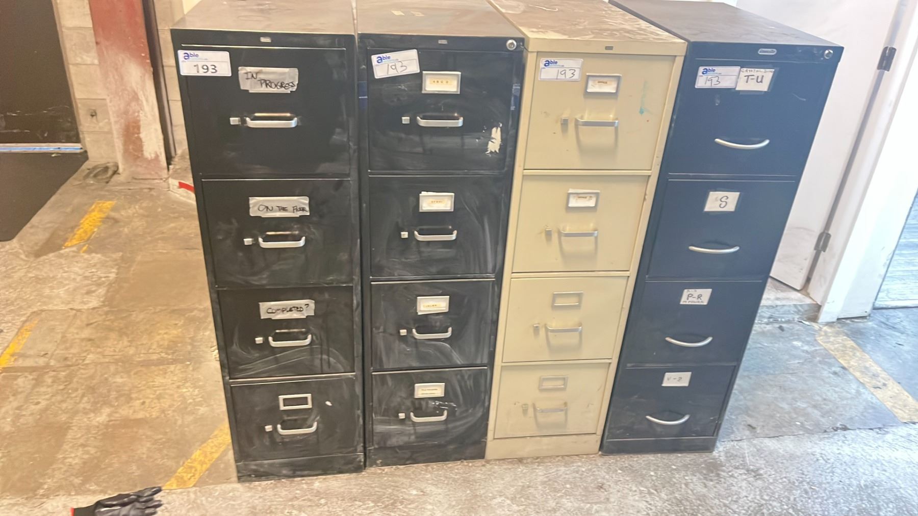 4 FILING CABINETS & 1 WOODEN STORAGE CUBBY SHELF