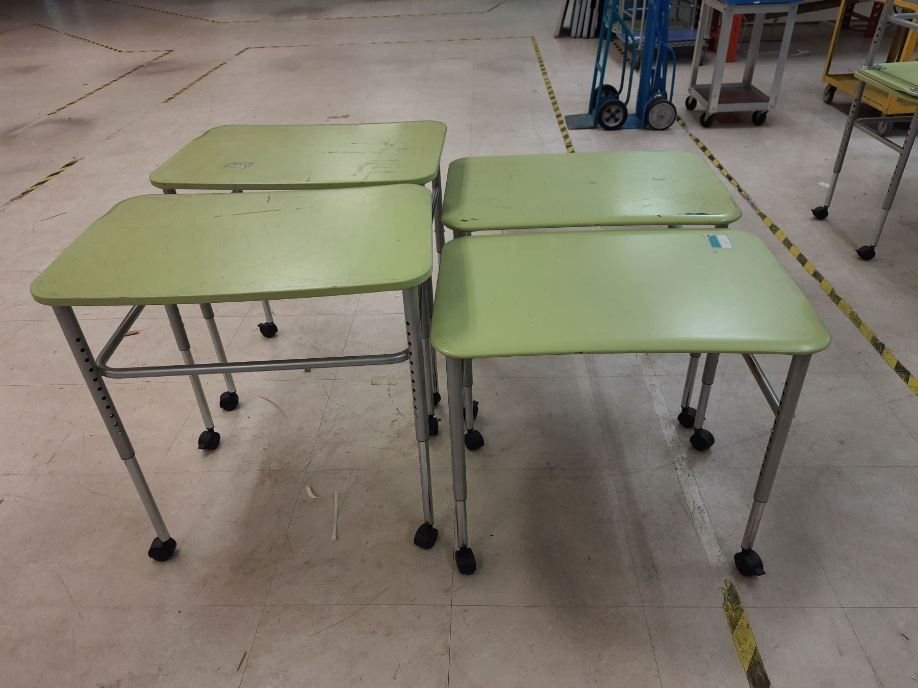 4 - GREEN 4 WHEEL MOBILE ADJUSTABLE HEIGHT PERSONAL WORK TABLES