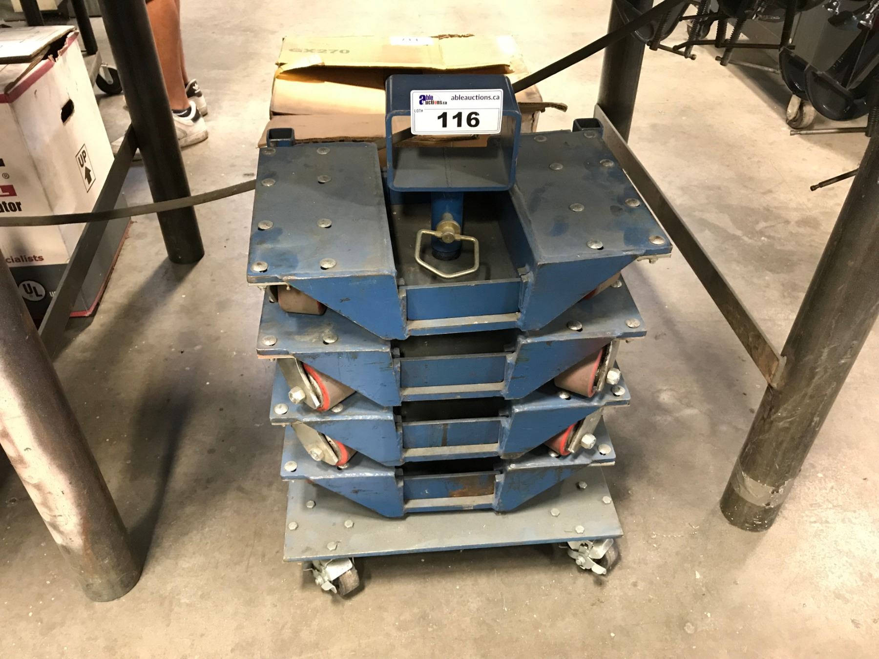 4 HEAVY DUTY LEG LOCK MACHINE SKATES ON MOBILE RACK