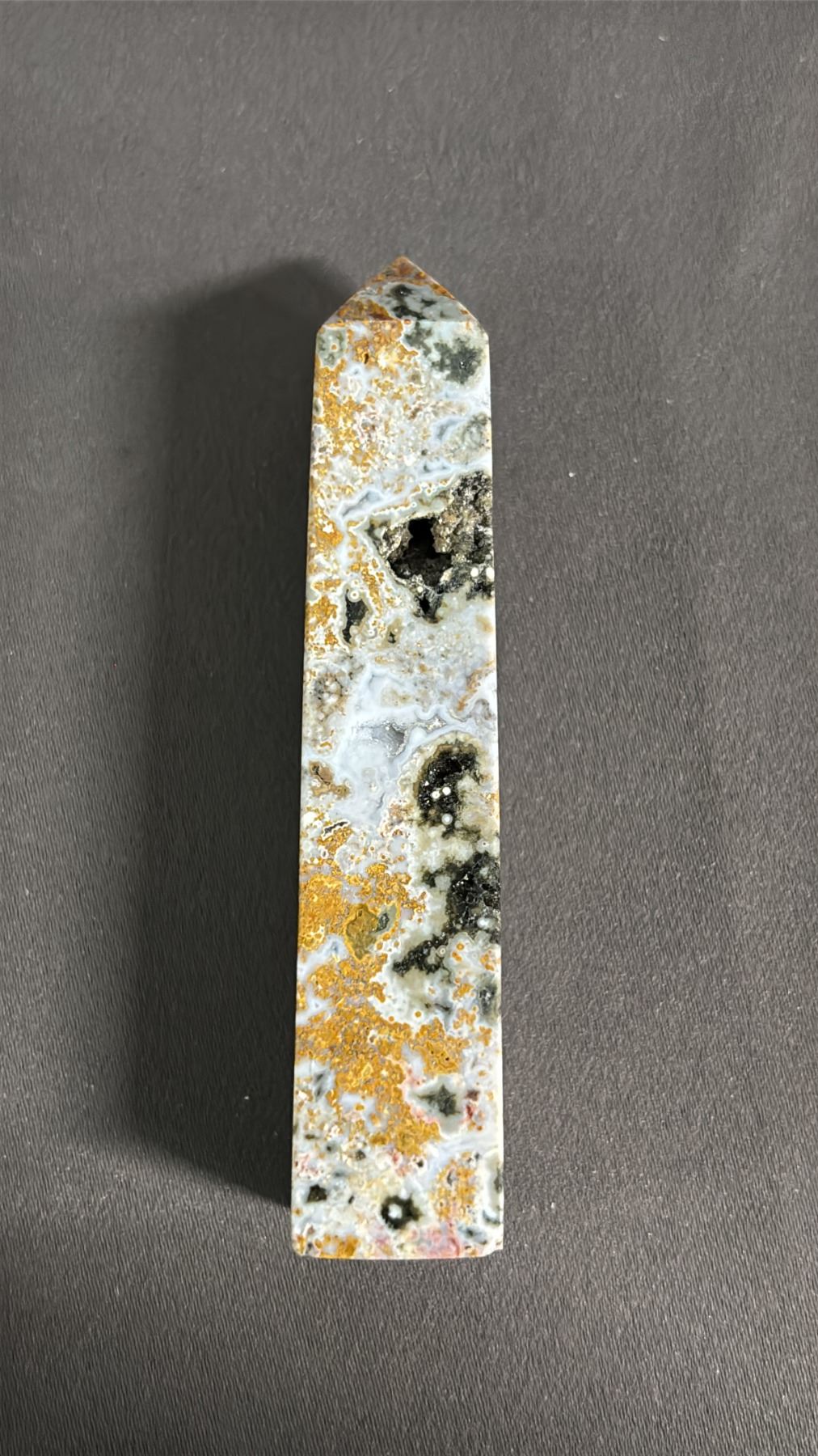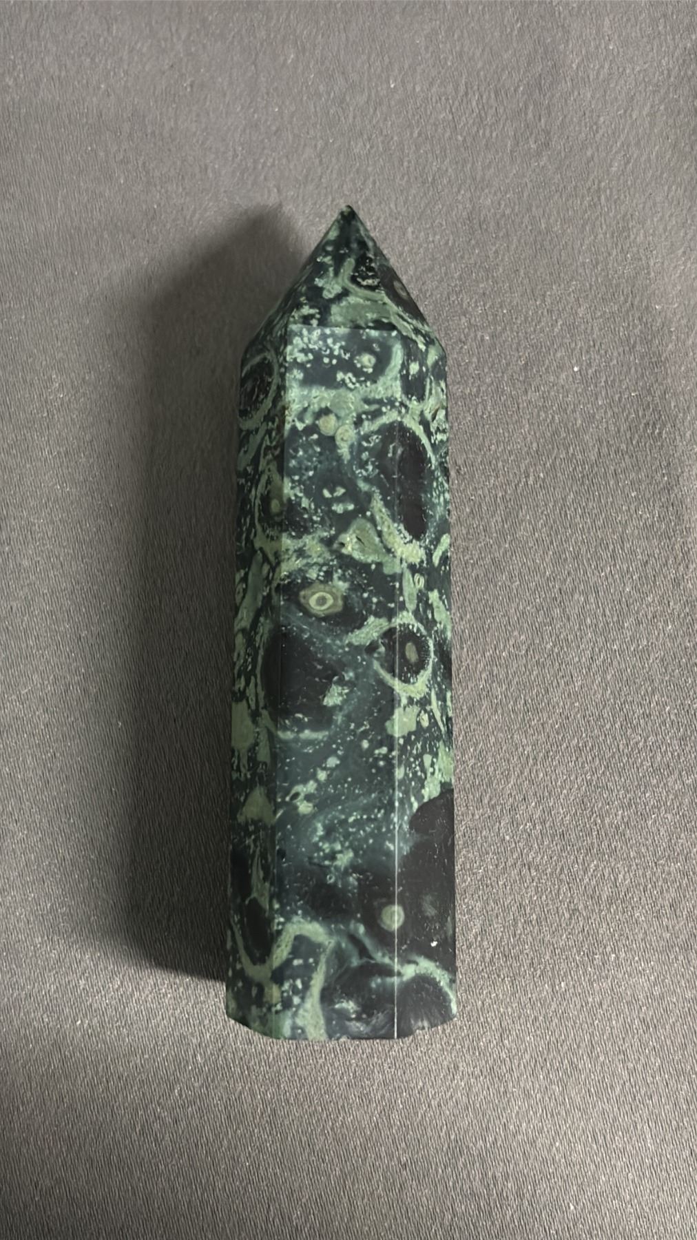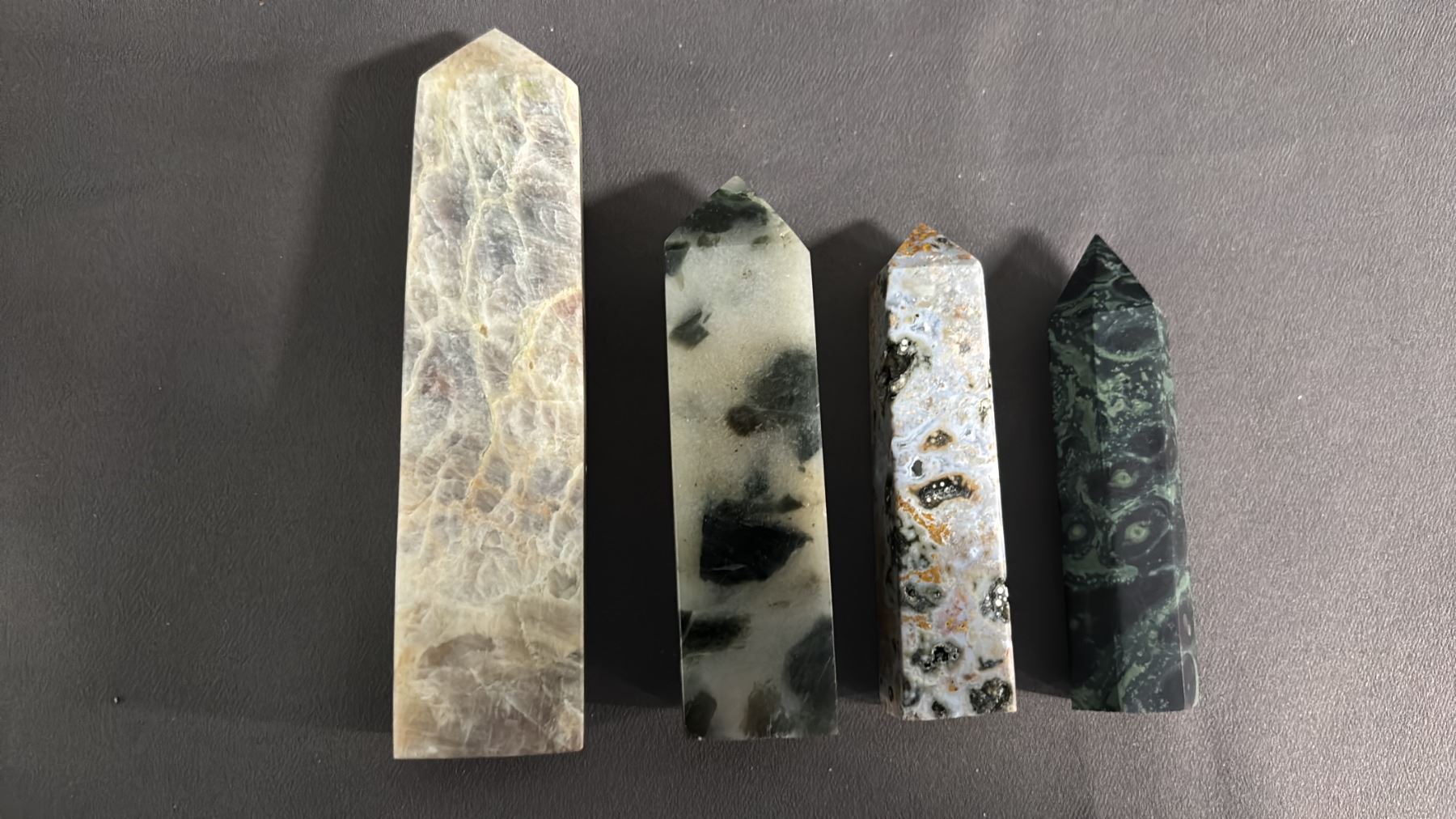 (4) JASPER, MOONSTONE & TOURMALINE QUARTZ TOWERS: LARGEST IS APPROX. 5" TALL