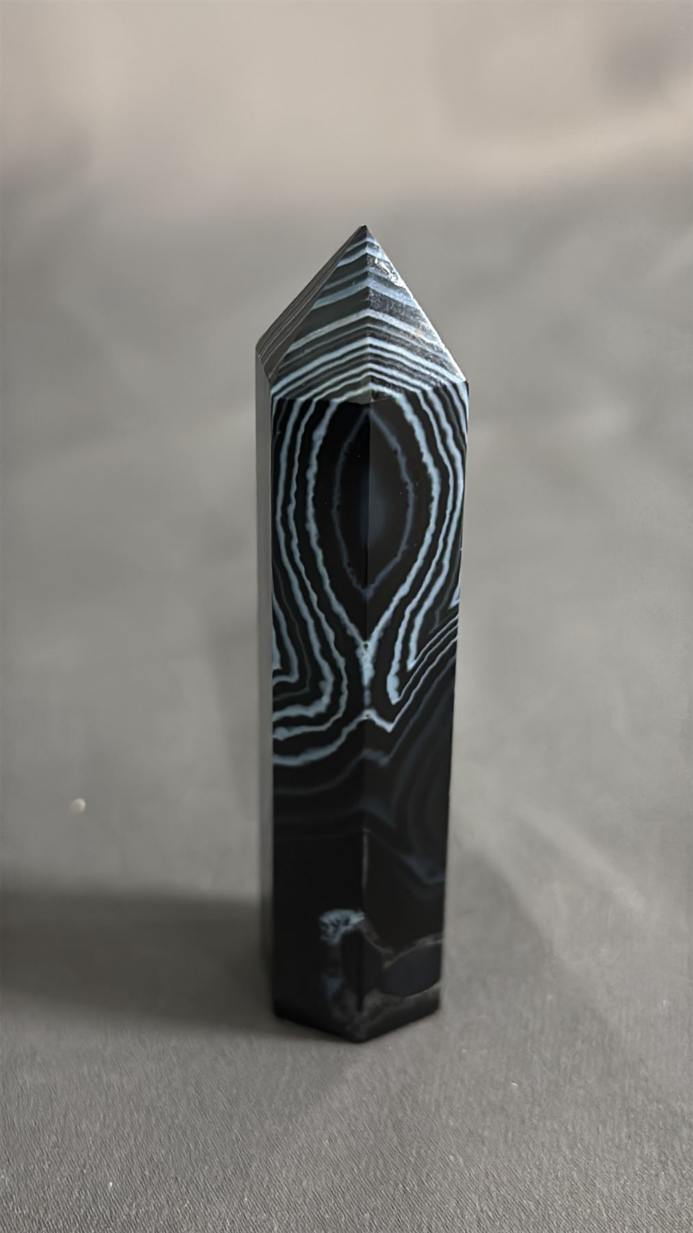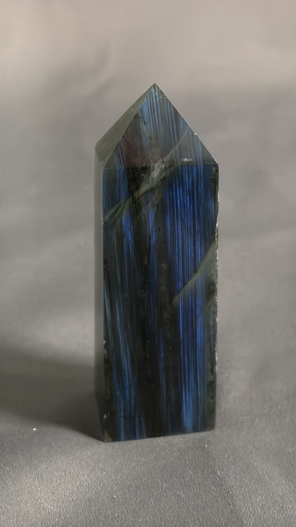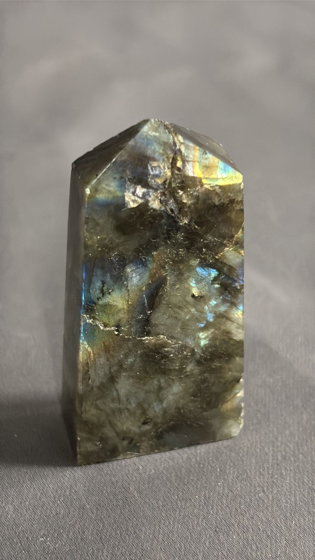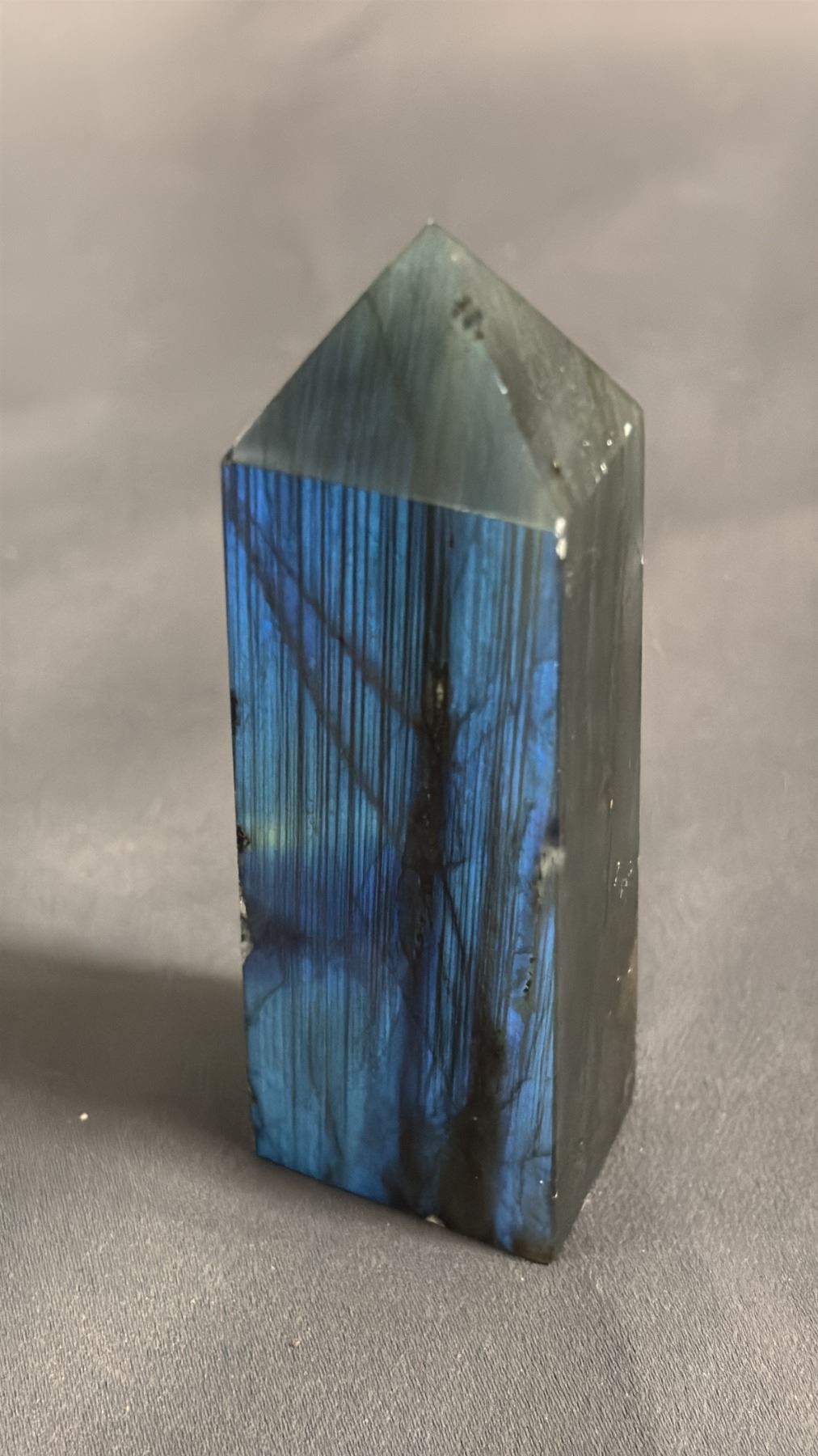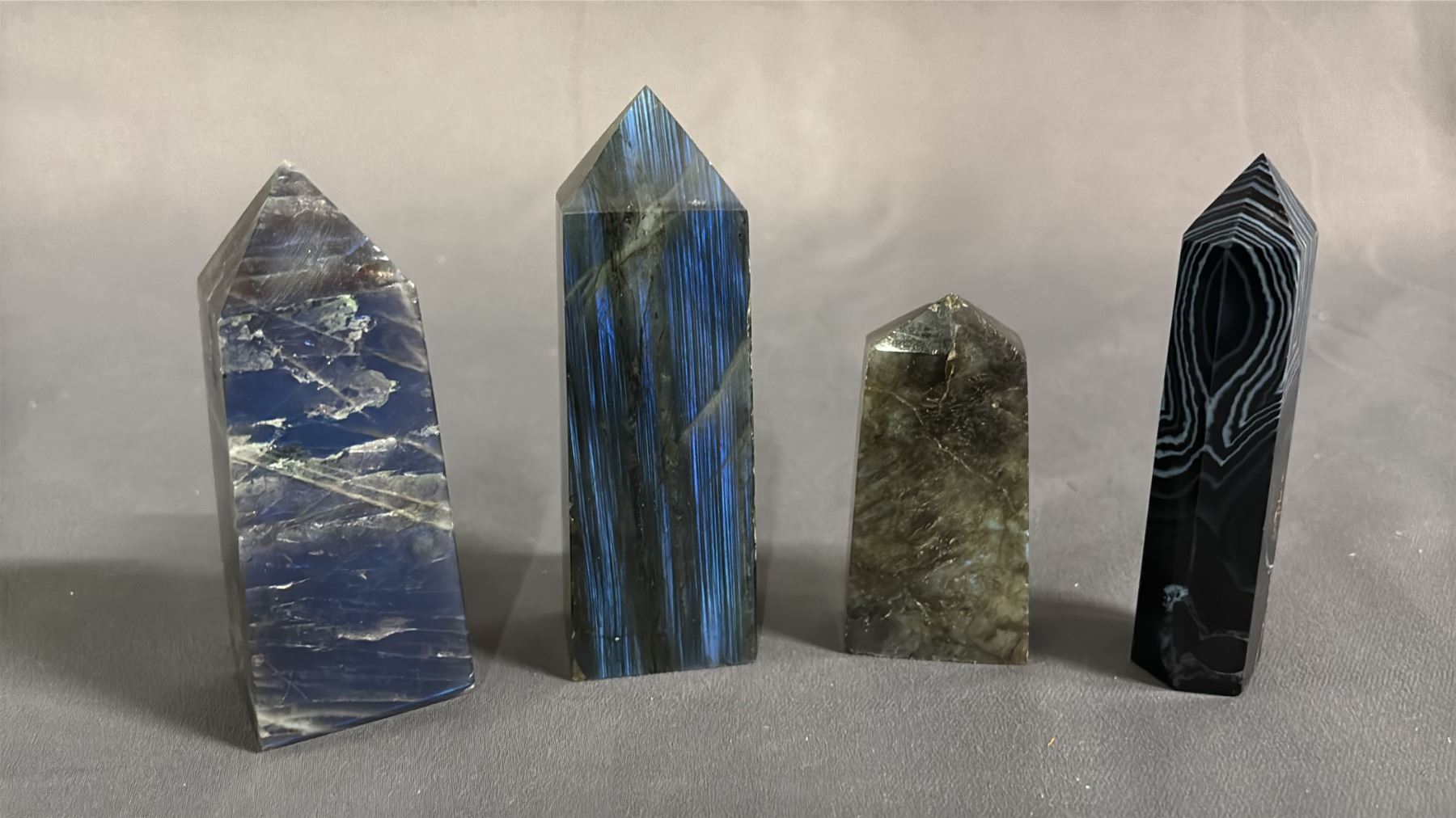 (4) LABRADORITE & AGATE TOWERS: LARGEST IS APPROX. 4" TALL