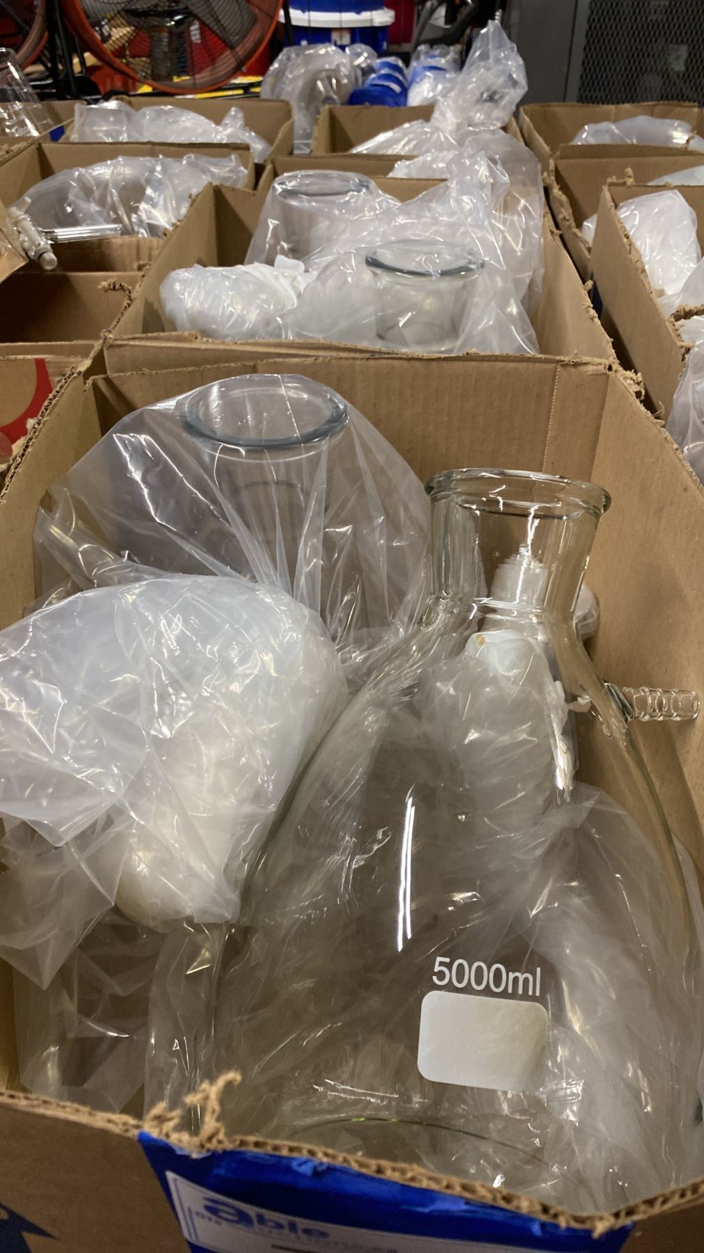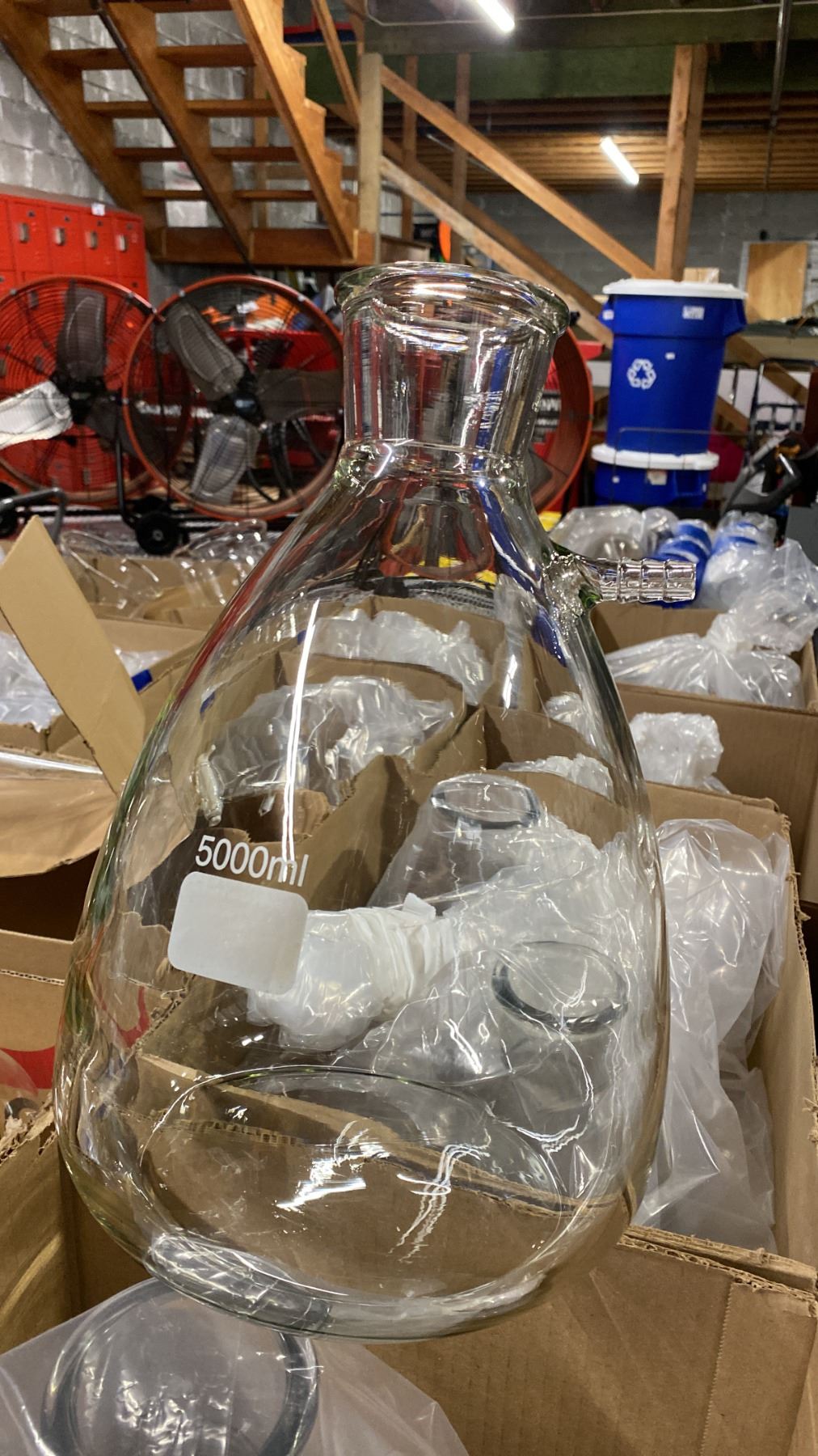4 LARGE LABORATORY GLASS FLAT BOTTOM FLASKS