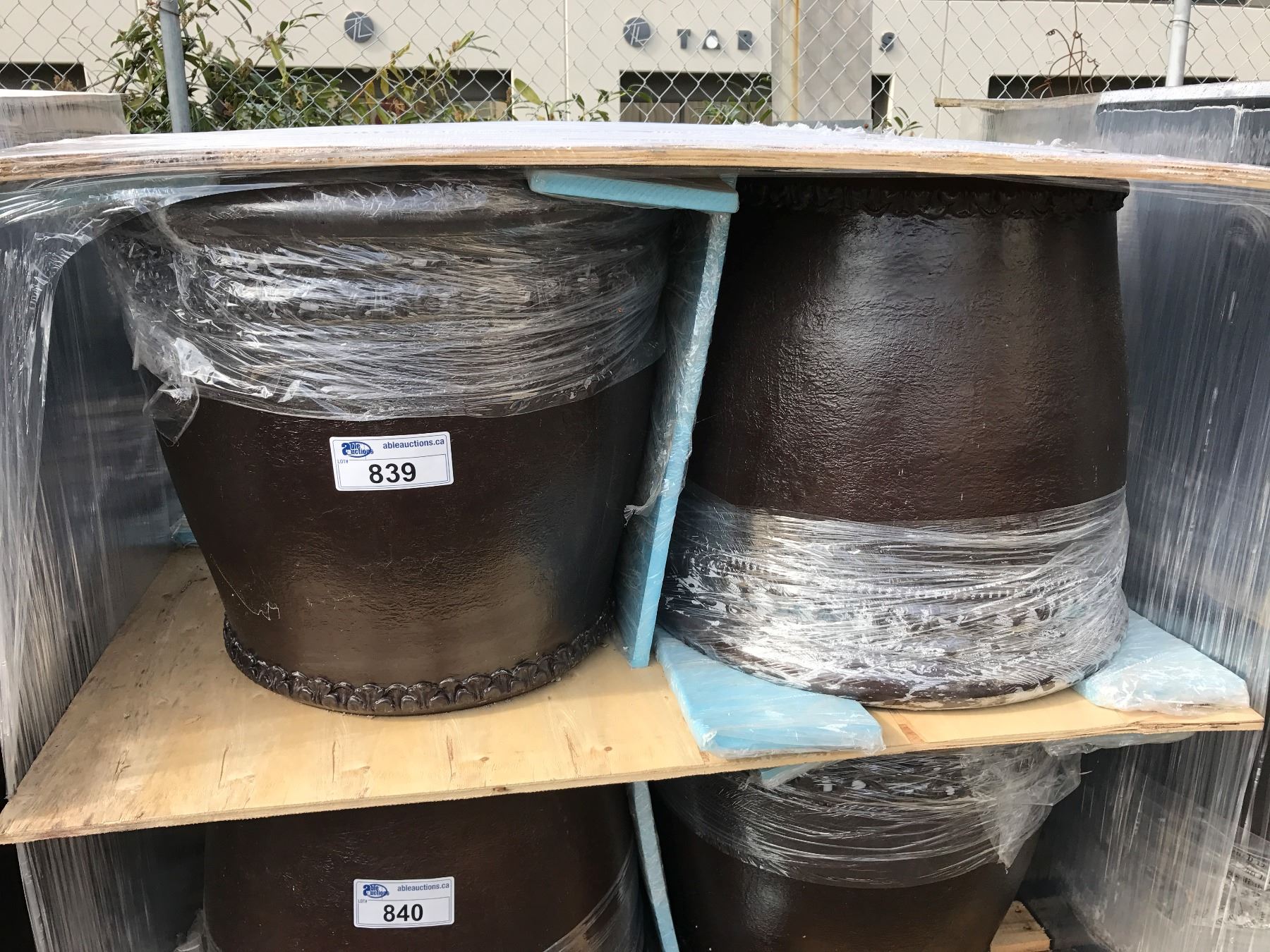 4 LARGE ROUND TEXTURED CEMENT GARDEN PLATERS