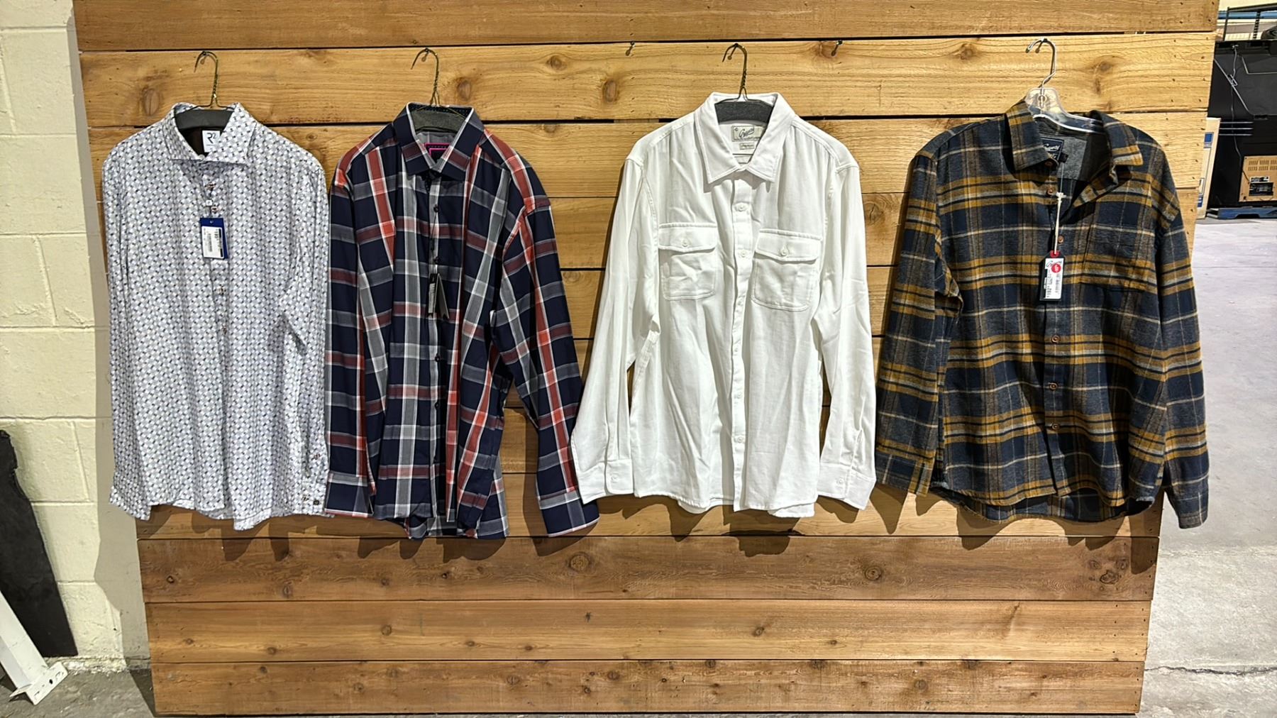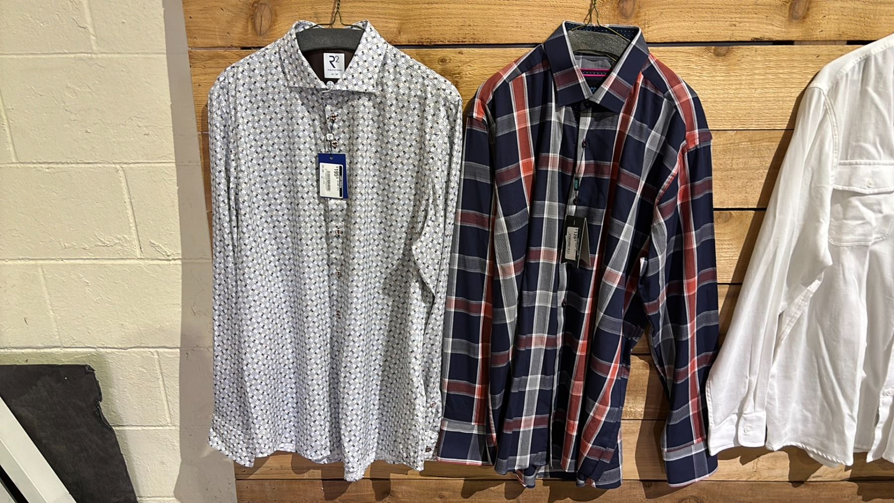 4- LONG SLEEVE BUTTON DOWN DRESS SHIRTS SIZE LARGE, BRANDS INCLUDING; GRAYERS, AMSTERDAM AND MORE