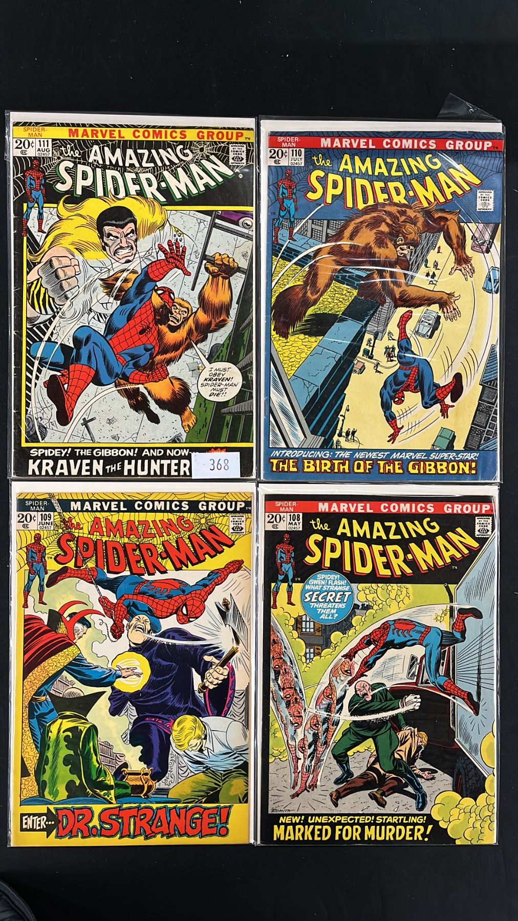 (4) MARVEL THE AMAZING SPIDER-MAN COMIC BOOKS; COMPLETE RUN #108-111