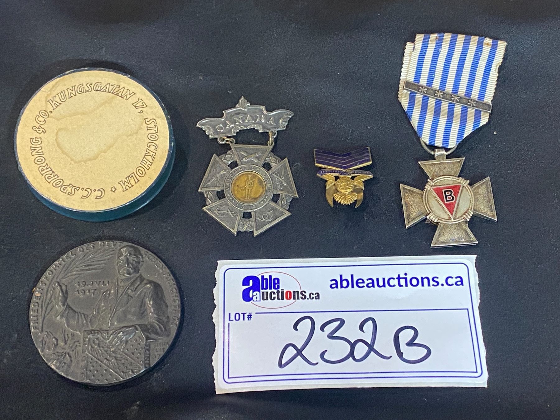 4 MEDALS (3 OF WHICH BEING WAR TIMES): FRIEDEN SFORMEL DES DEVT 1917, CANADA VALCARTIER CAMP 1914, WW2 POLITICAL PRISONER 1940-1945, & MORE