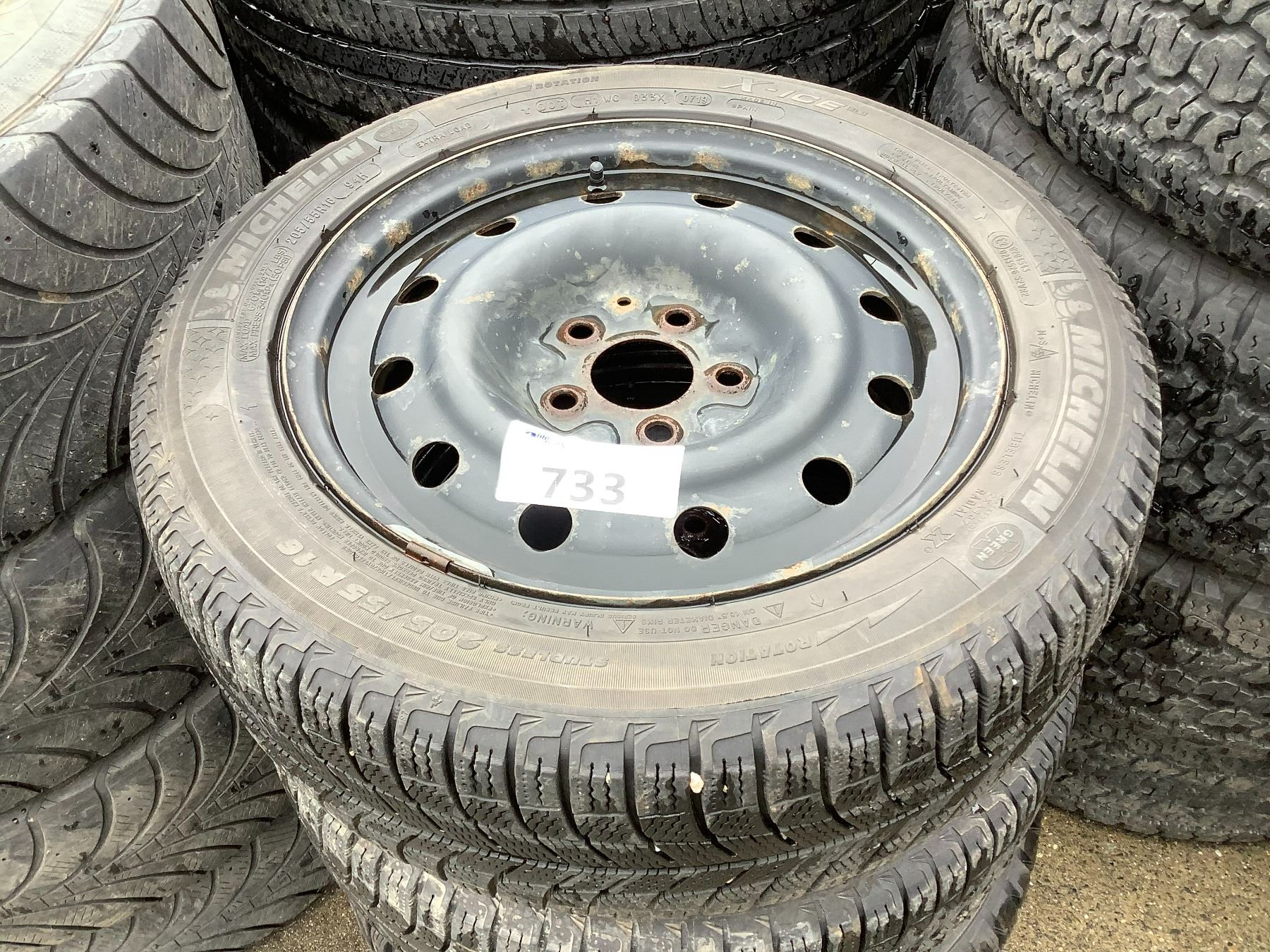 4 MICHELIN X- ICE 205/55R16 94H TIRES ON 5 BOLT METAL RIMS