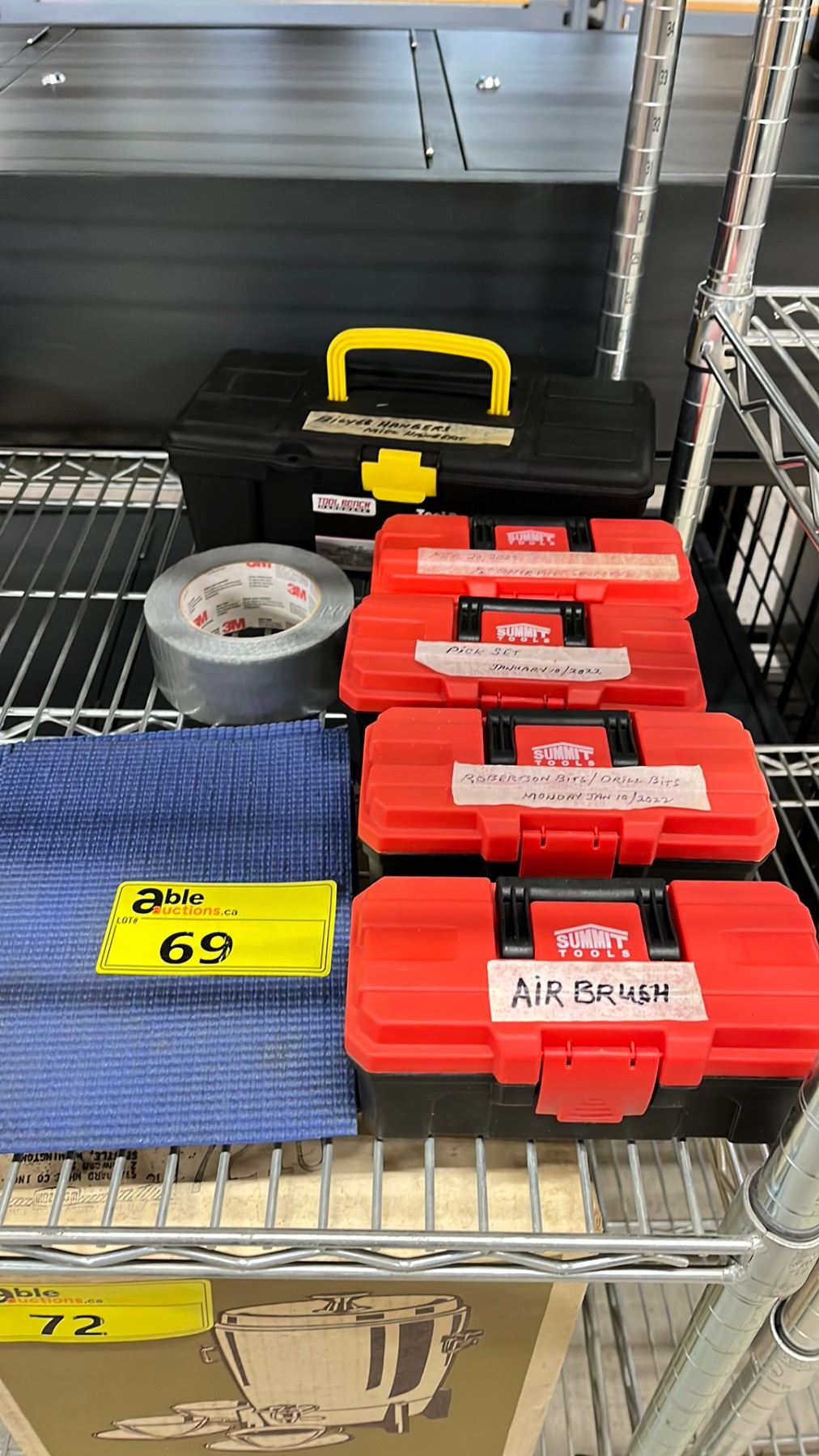 4 MINI TOOLBOXES WITH CONTENTS, TAPE, & MORE